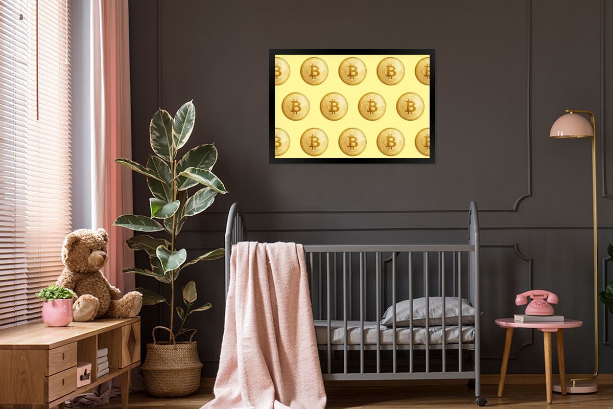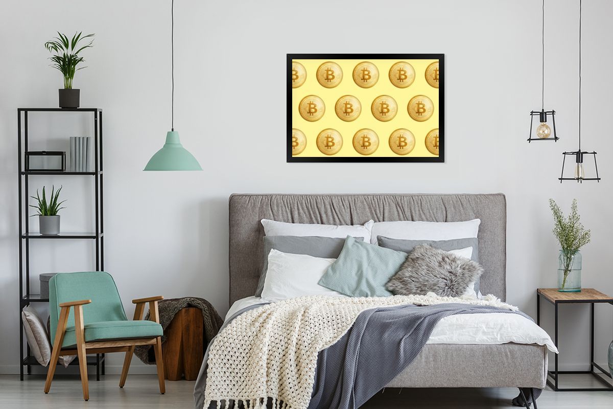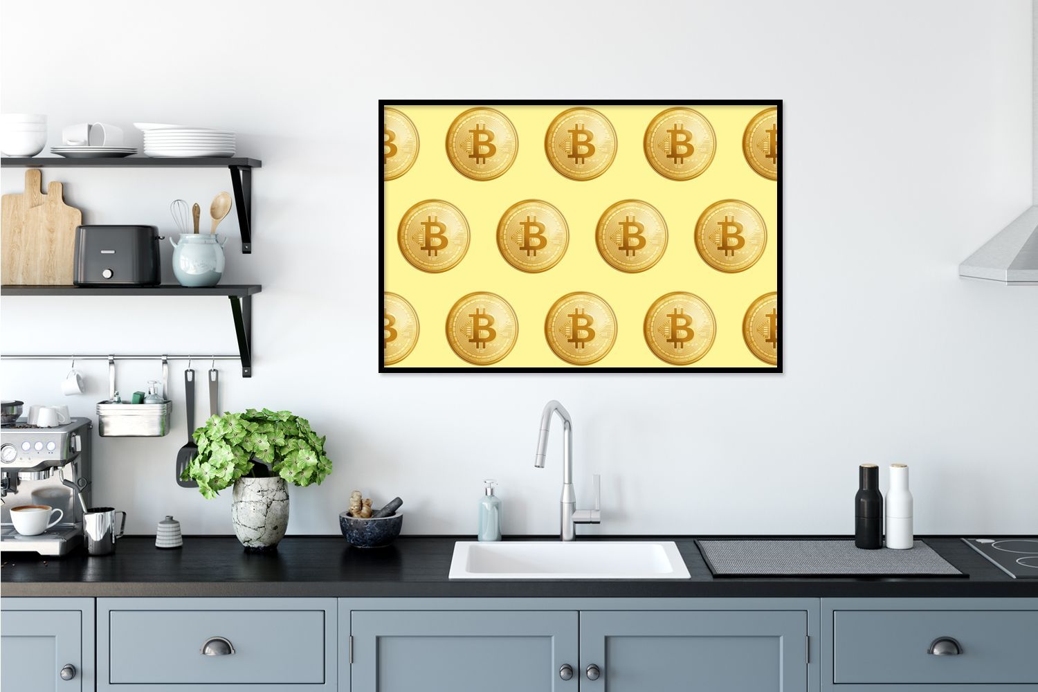 Poster - 90x60 cm - Bitcoin - Gold - Muster - Gelb