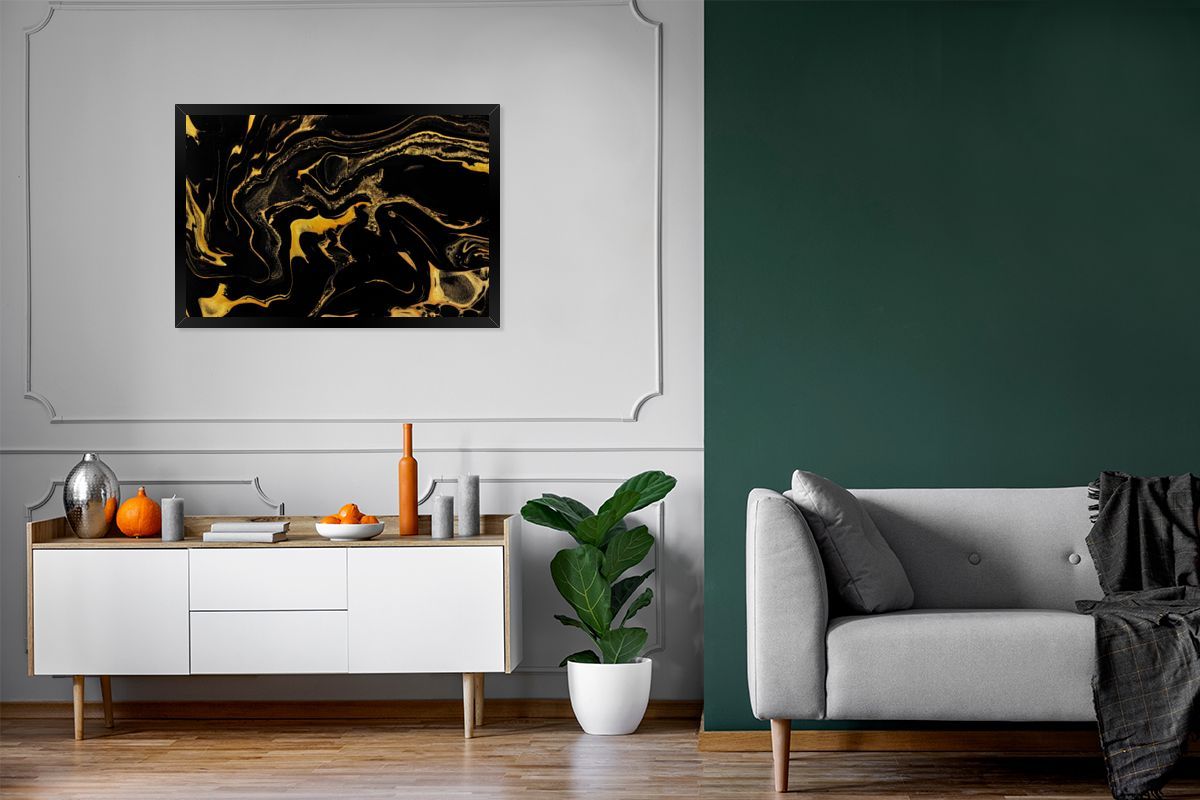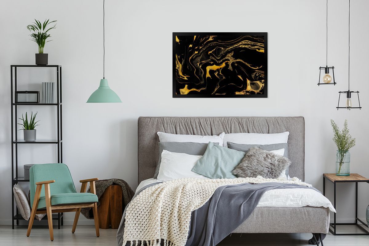 Poster - 90x60 cm - Muster - Gold - Schwarz
