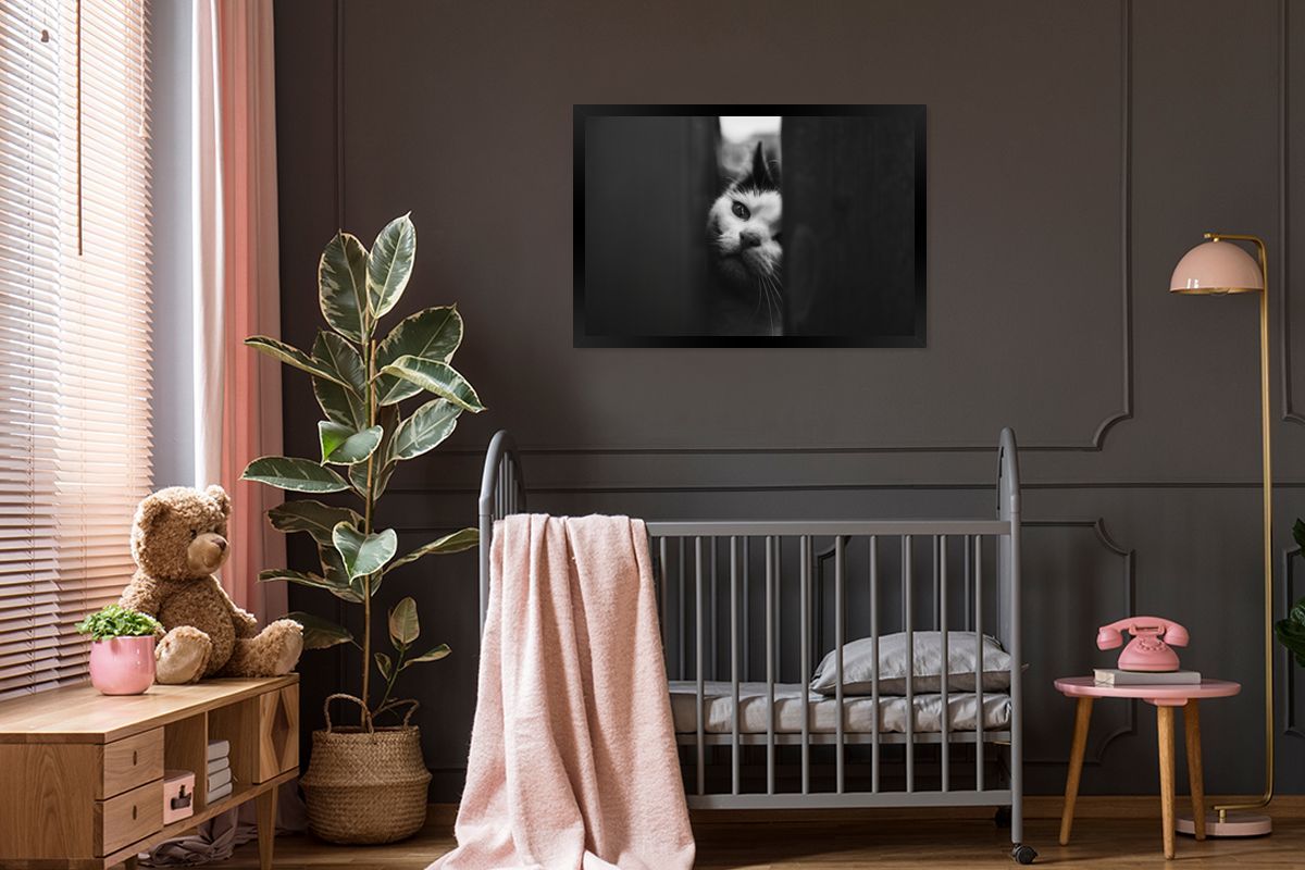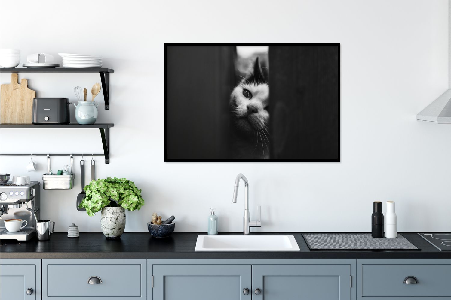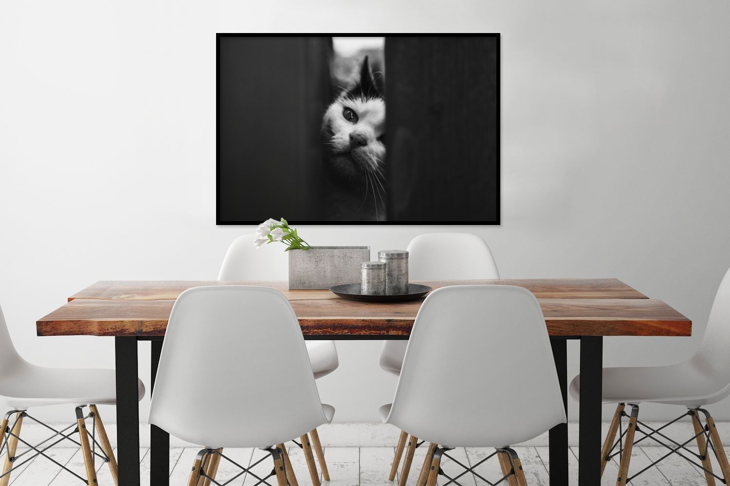 Poster - 90x60 cm - Tierprofil Spionage Katze in schwarz und weiß