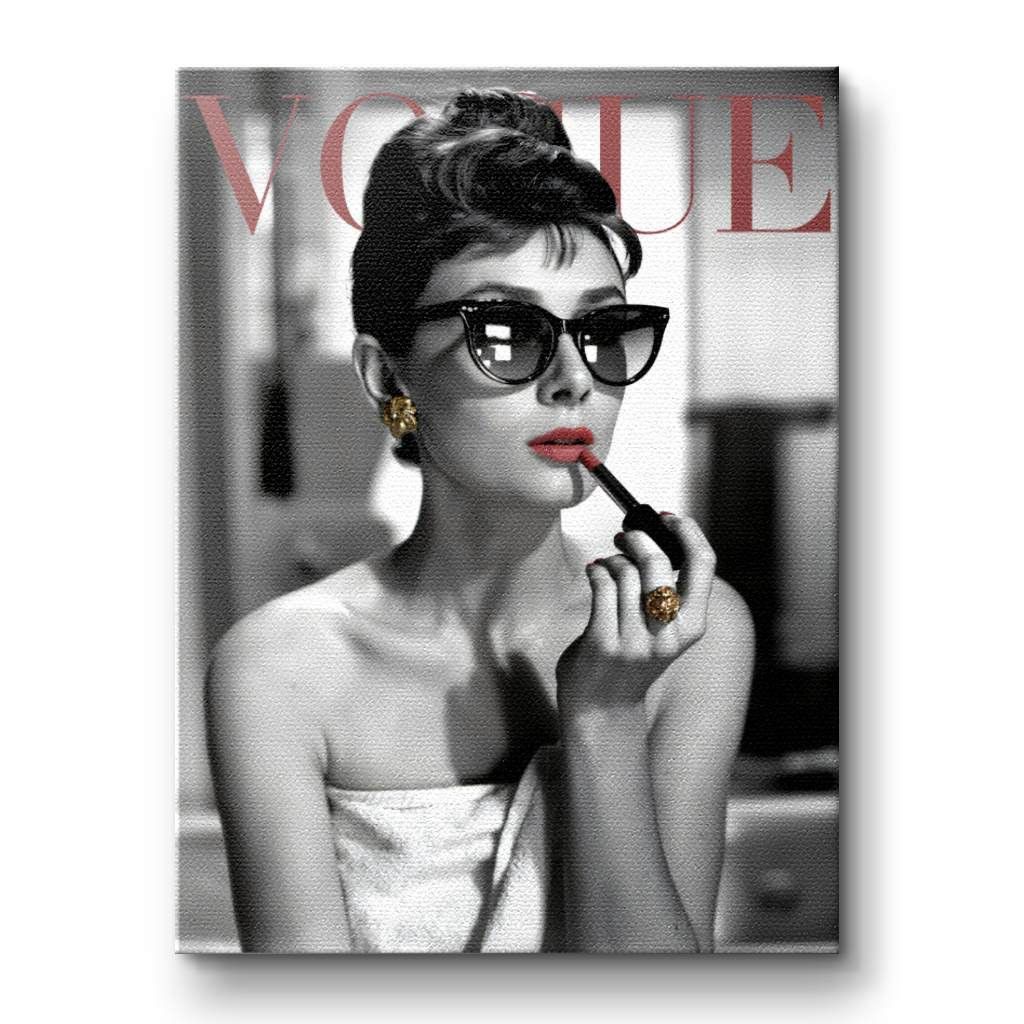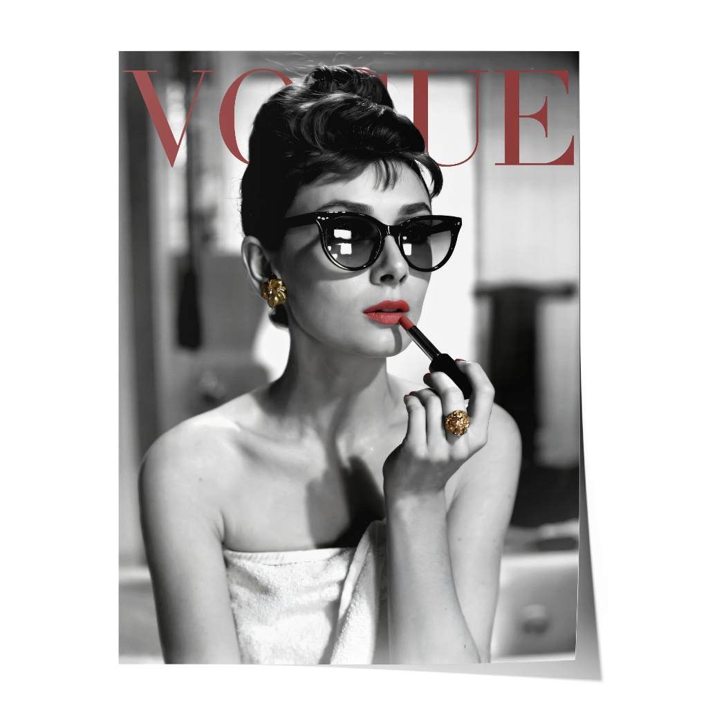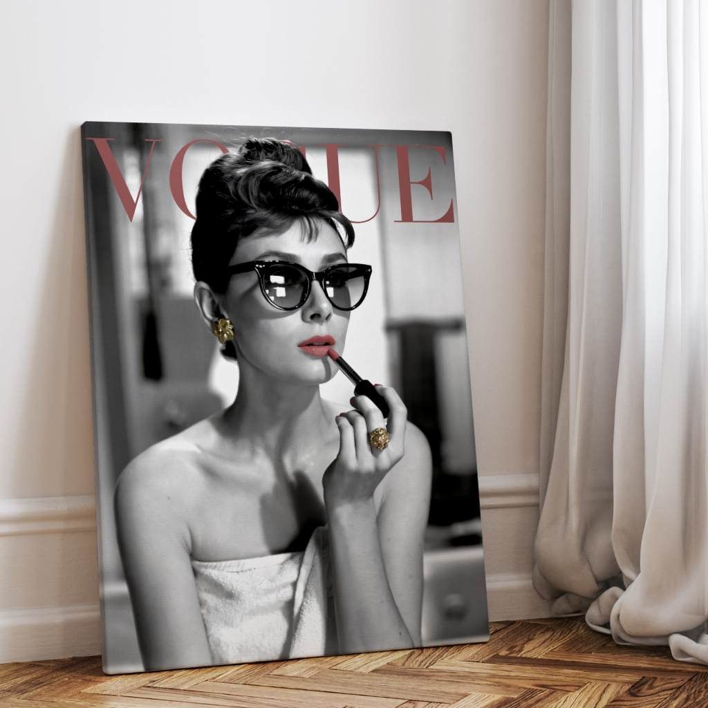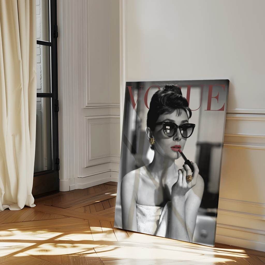 CANVEO Poster Leinwandbild Audrey Hepburn VOGUE cover Badezimmer Deko schwarz weiß Mode Bild