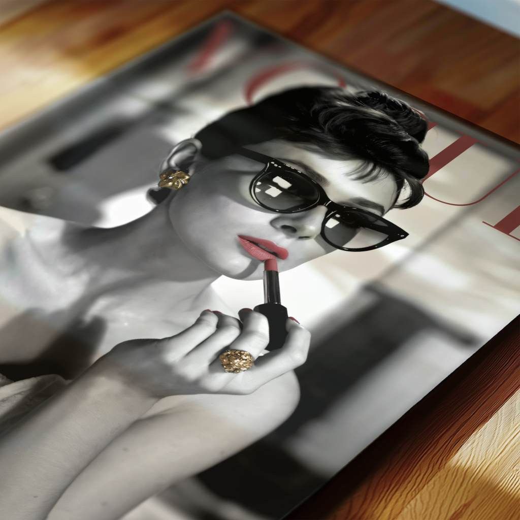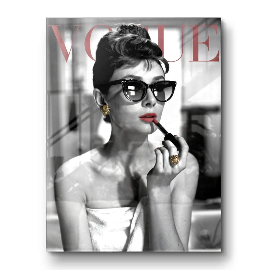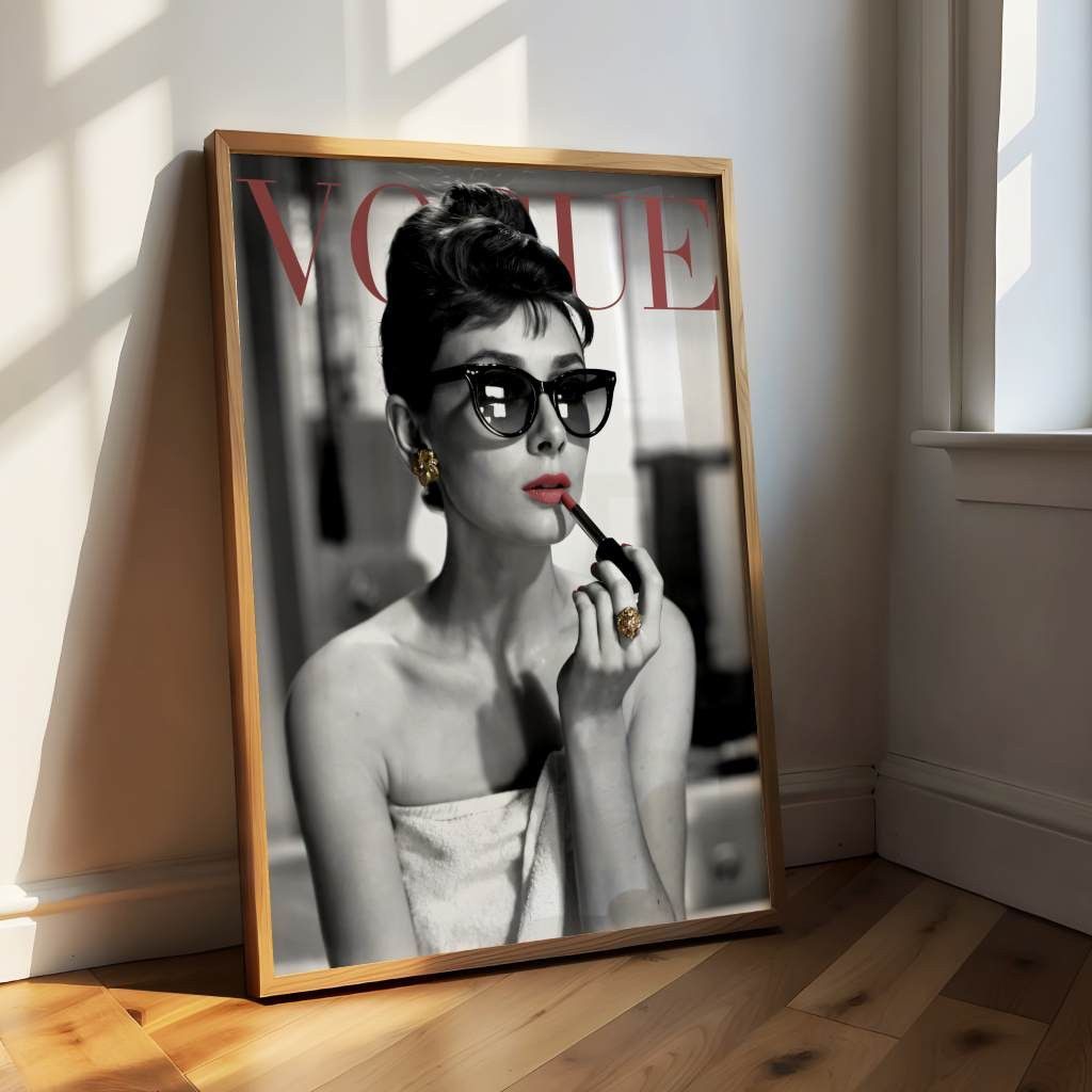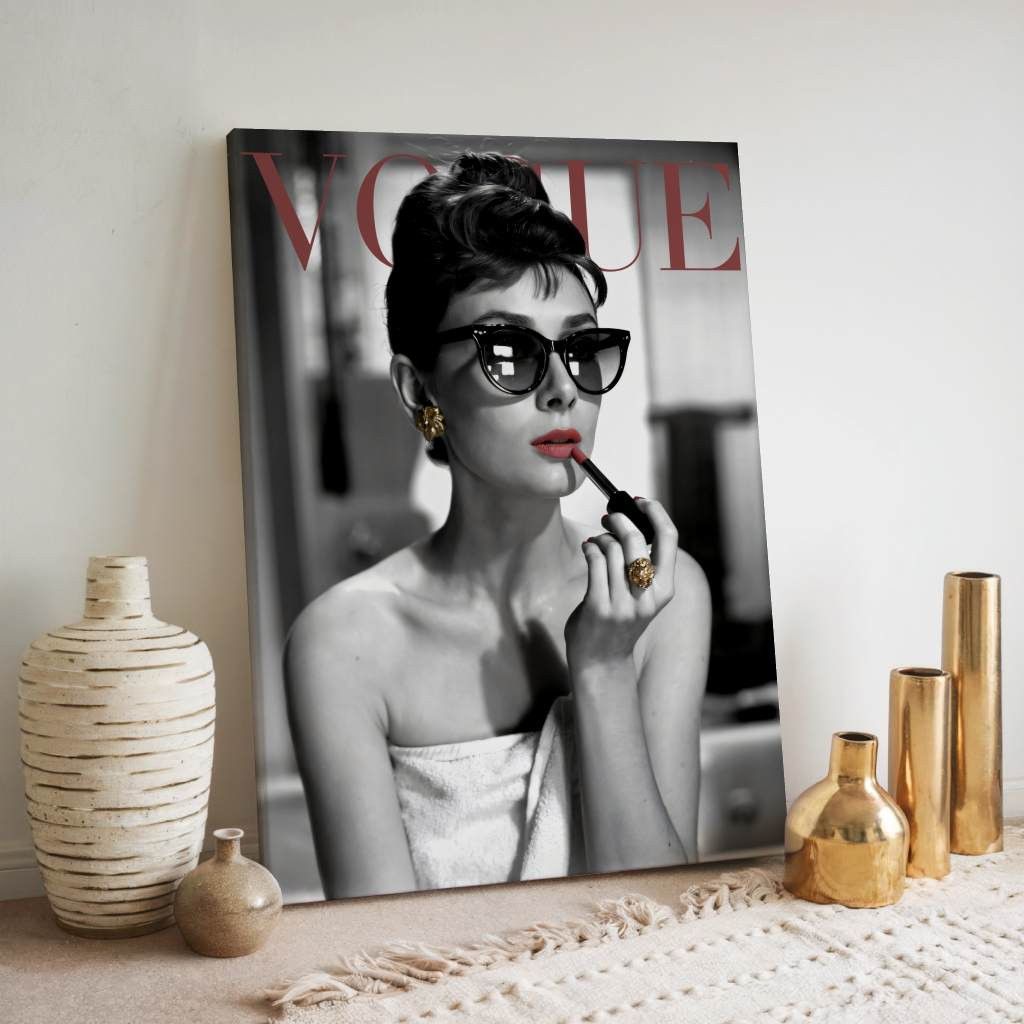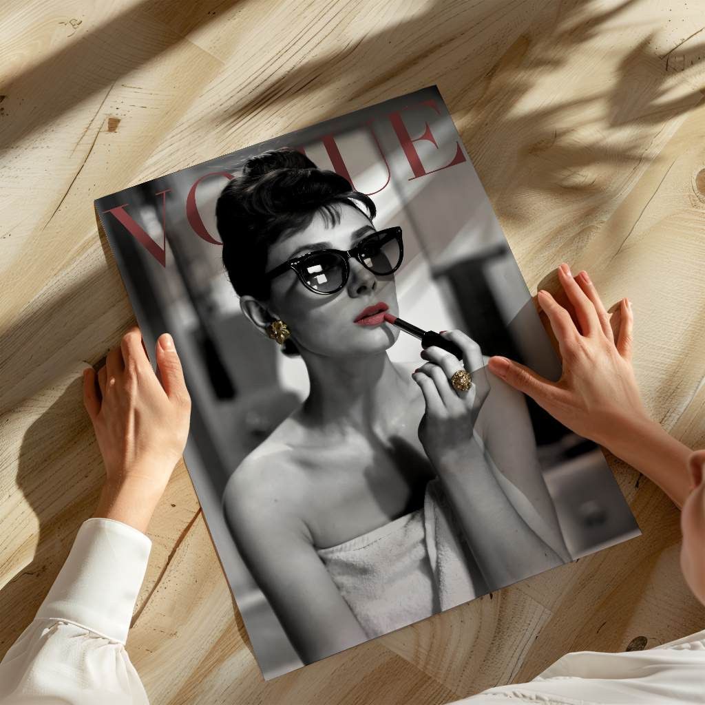 CANVEO Poster Leinwandbild Audrey Hepburn VOGUE cover Badezimmer Deko schwarz weiß Mode Bild
