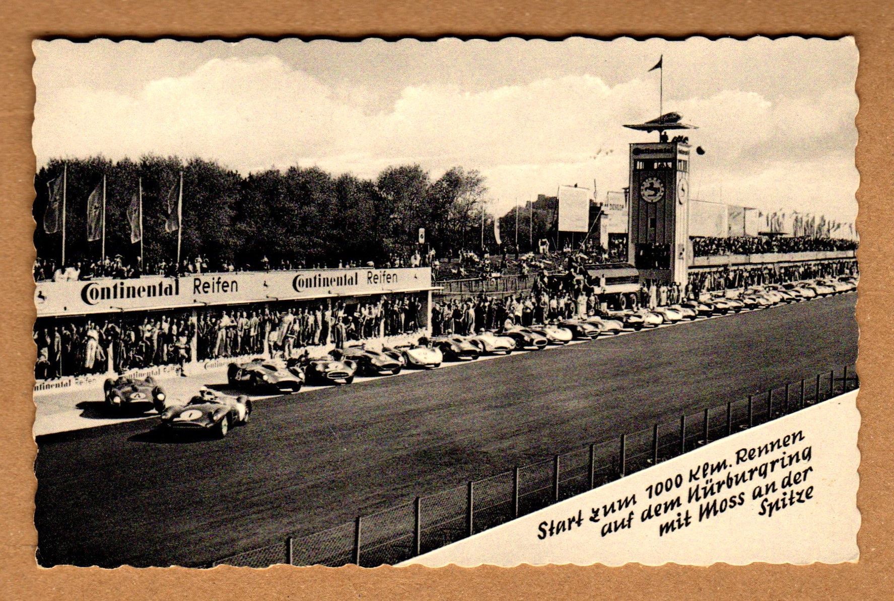 Postkarte Ansichtskarte 1000km Rennen Nürburgring Moss an Spitze ungelaufen Rennsport