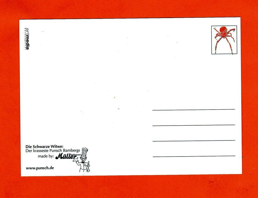 Postkarte Bamberg - Schwarze Witwe-- kalt gemacht am Gabelmann - ungebraucht