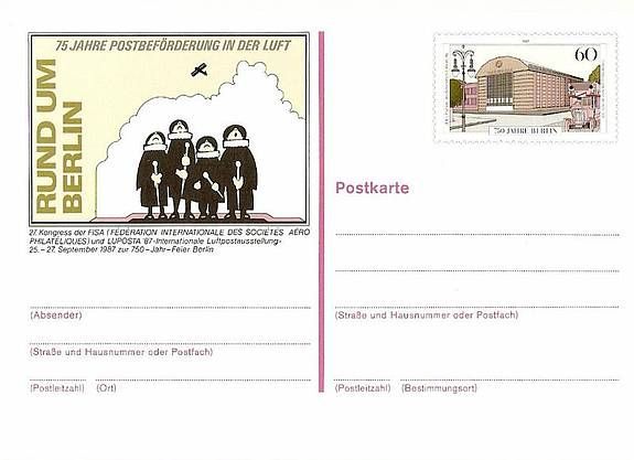 Postkarte Berlin P 127 * 60 Luposta ´87 Kongress Fisa 750 Jahre Berlin Ganzsache