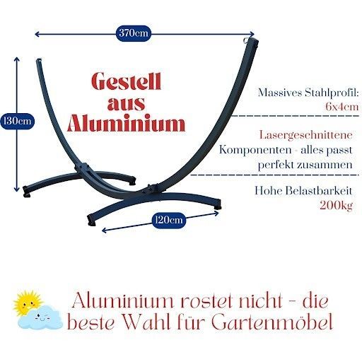 Potenza Aluminium Gestell Outdoor Hängemattengestell XXL 360cm, 200kg