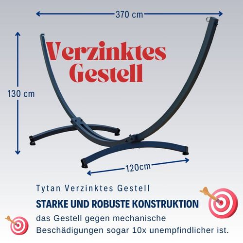 Potenza Hängematte 210x140 mit Verzinkung Tytan Gestell für 2 Personen Stabhängematte