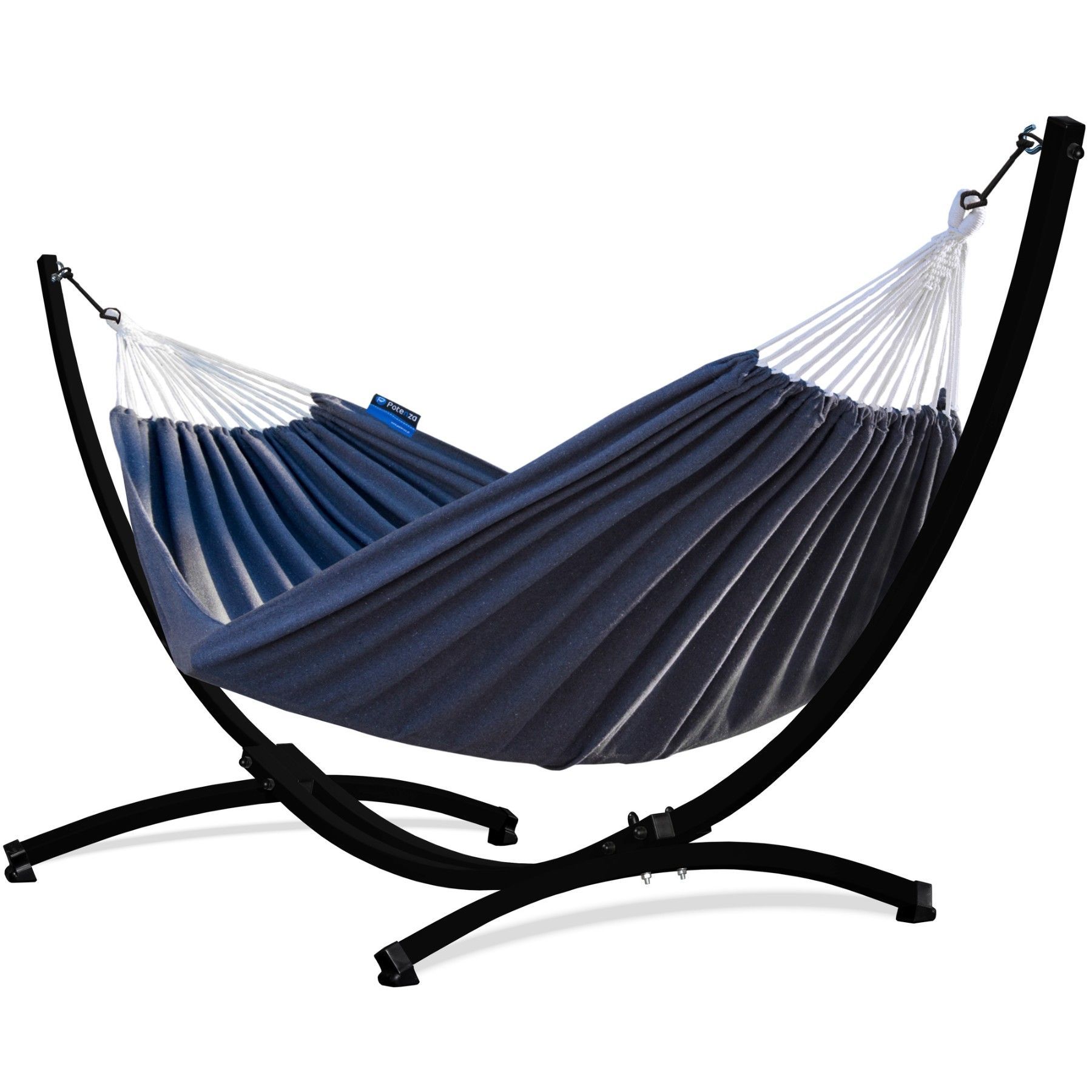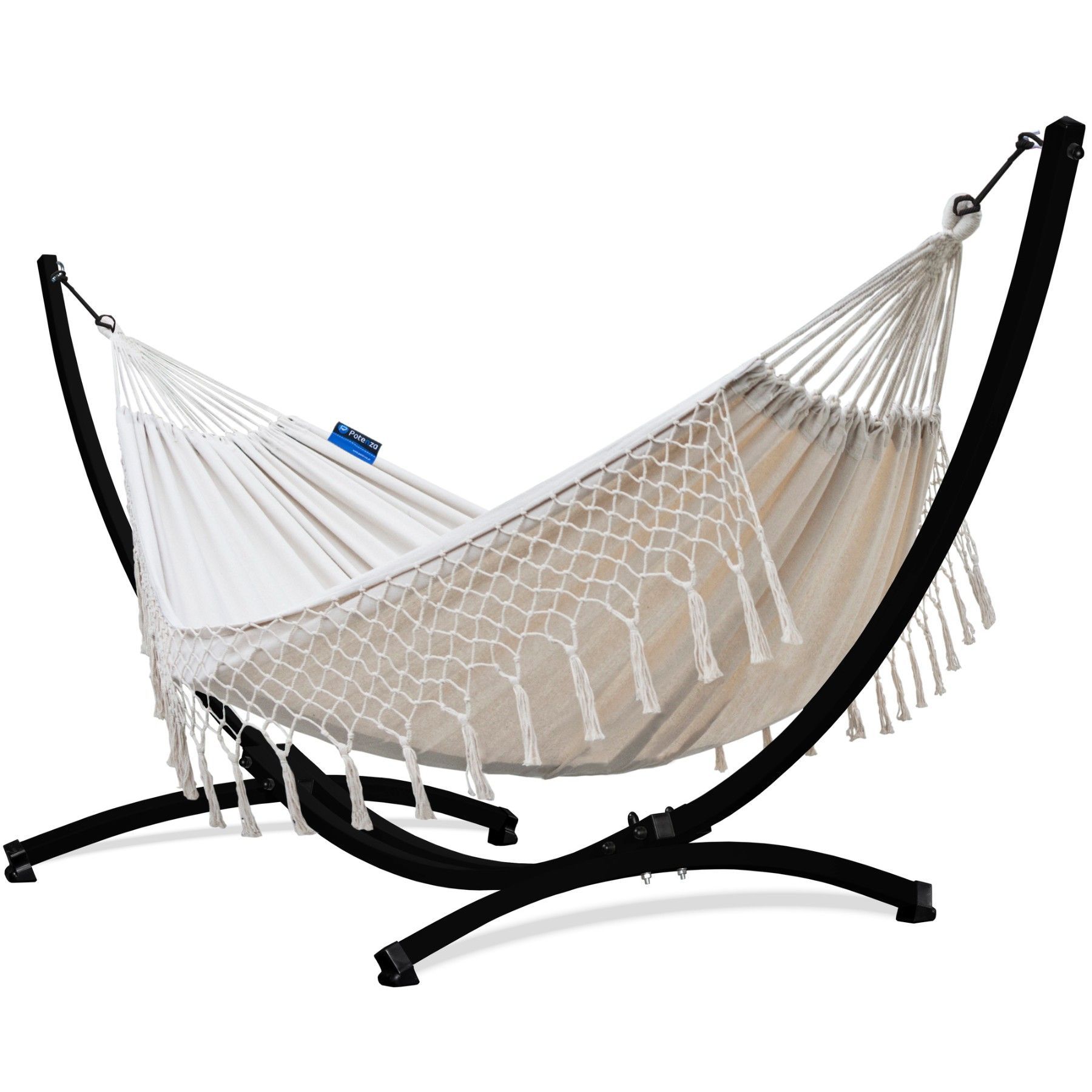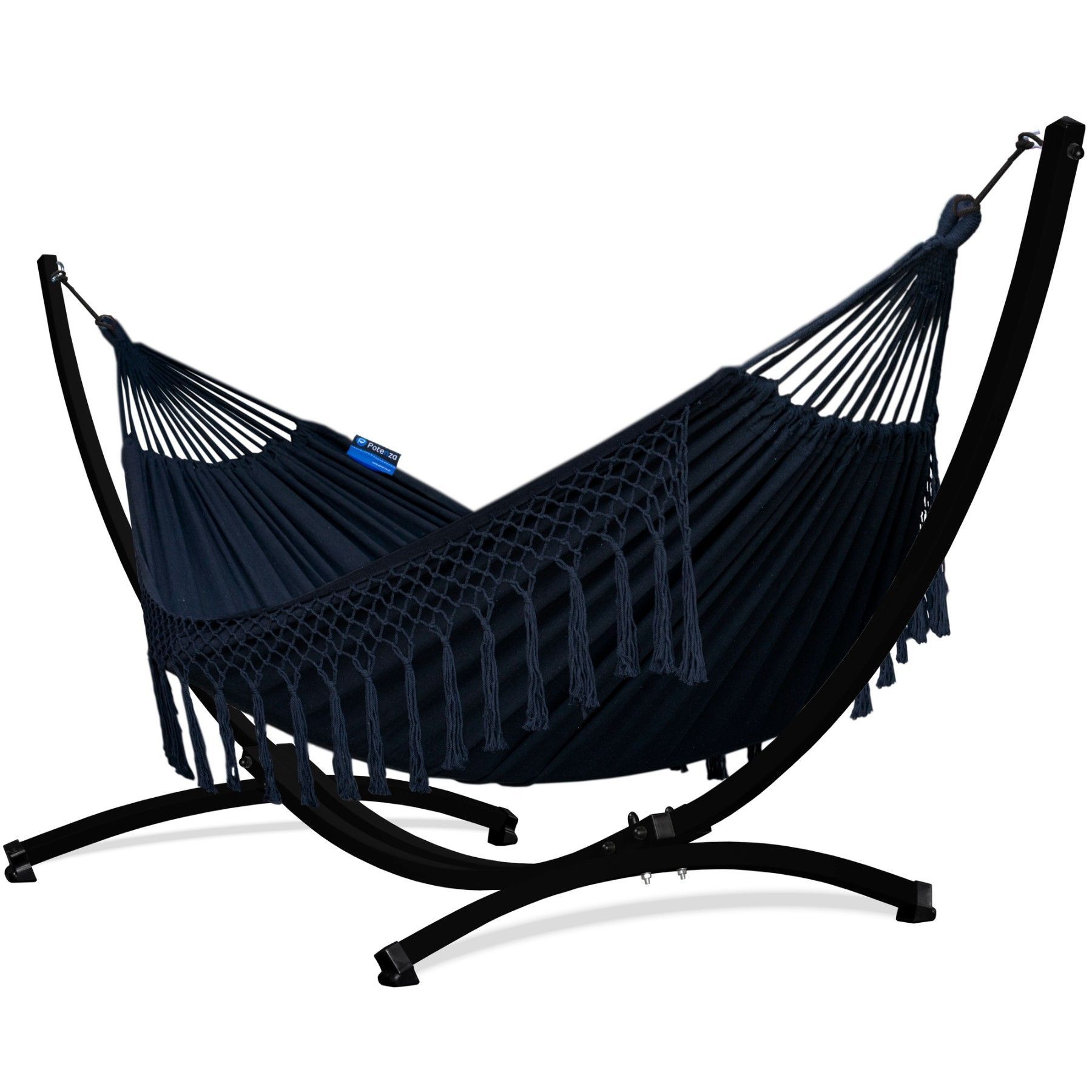 Potenza Hängematte mit Gestell für 2 Personen, Baumwolle XXL 220x160,200kg wetterfest