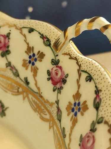 Sie erhalten eine sehr schöne, sehr seltene Schale Obstschale Gebäckschale Schüssel mit Griff von Hand, mit bunte Blumen und Rosen Muster bemalt. Es gibt keine Fehler.Leichte Gebrauchsspuren, bitte sehen sie sich vor Gebotsabgabe die Bilder an sie sind Bestandteil des Angebots. Der Versandpreis ents