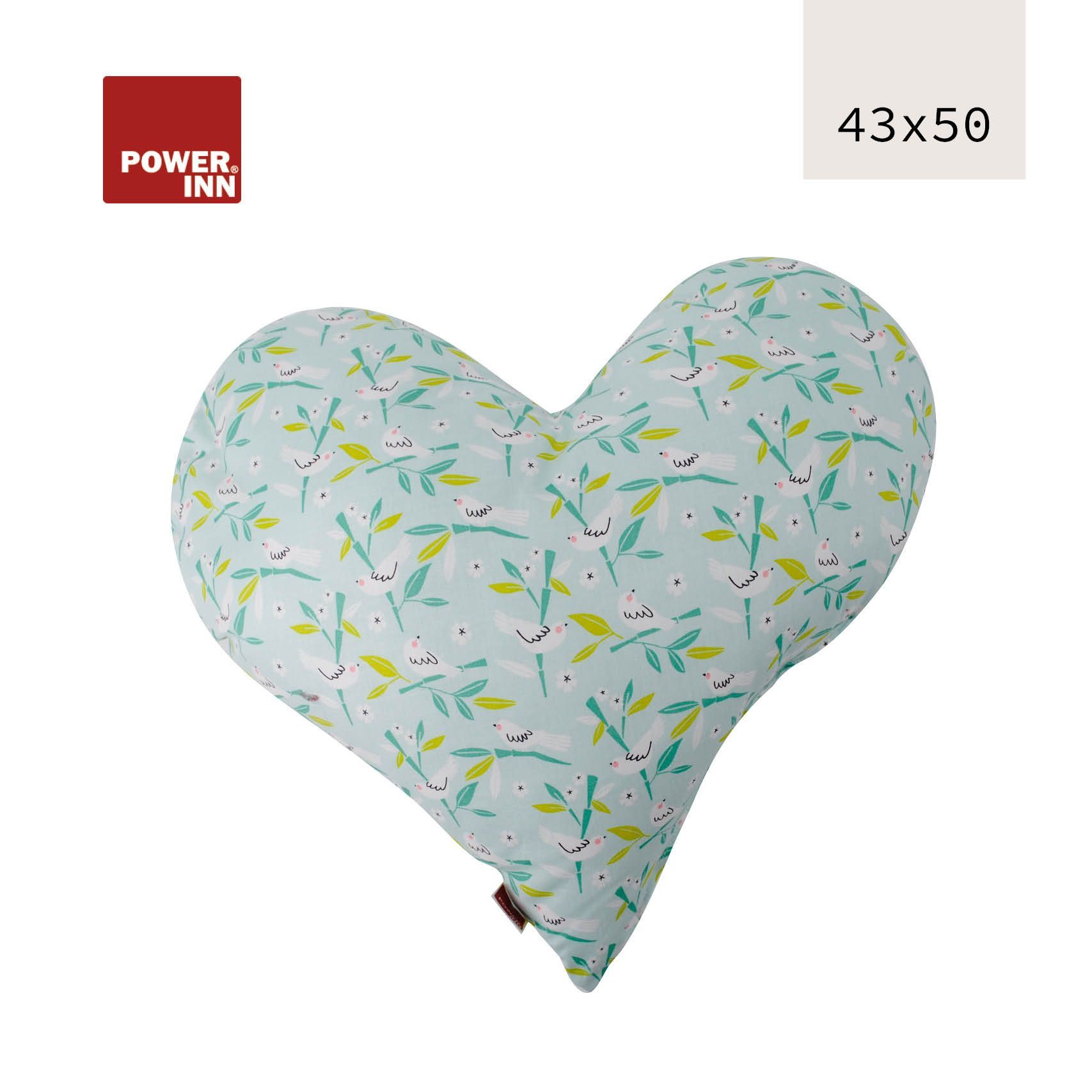 POWER INN Herzkissen groß | Hellblau mit weißen Tauben | Dekokissen