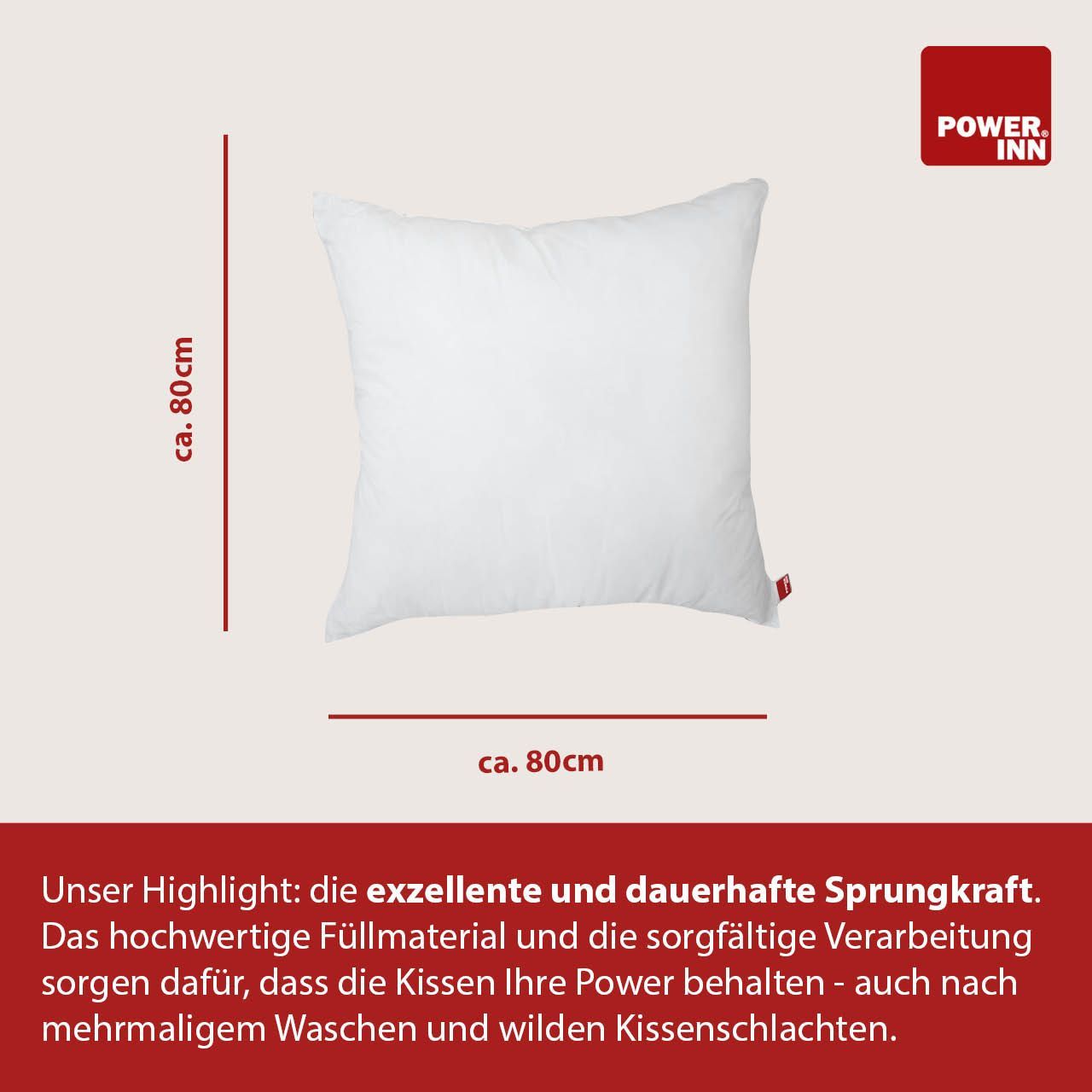 POWER INN® Innenkissen Baumwolle | Quadratisch | 80 x 80 cm