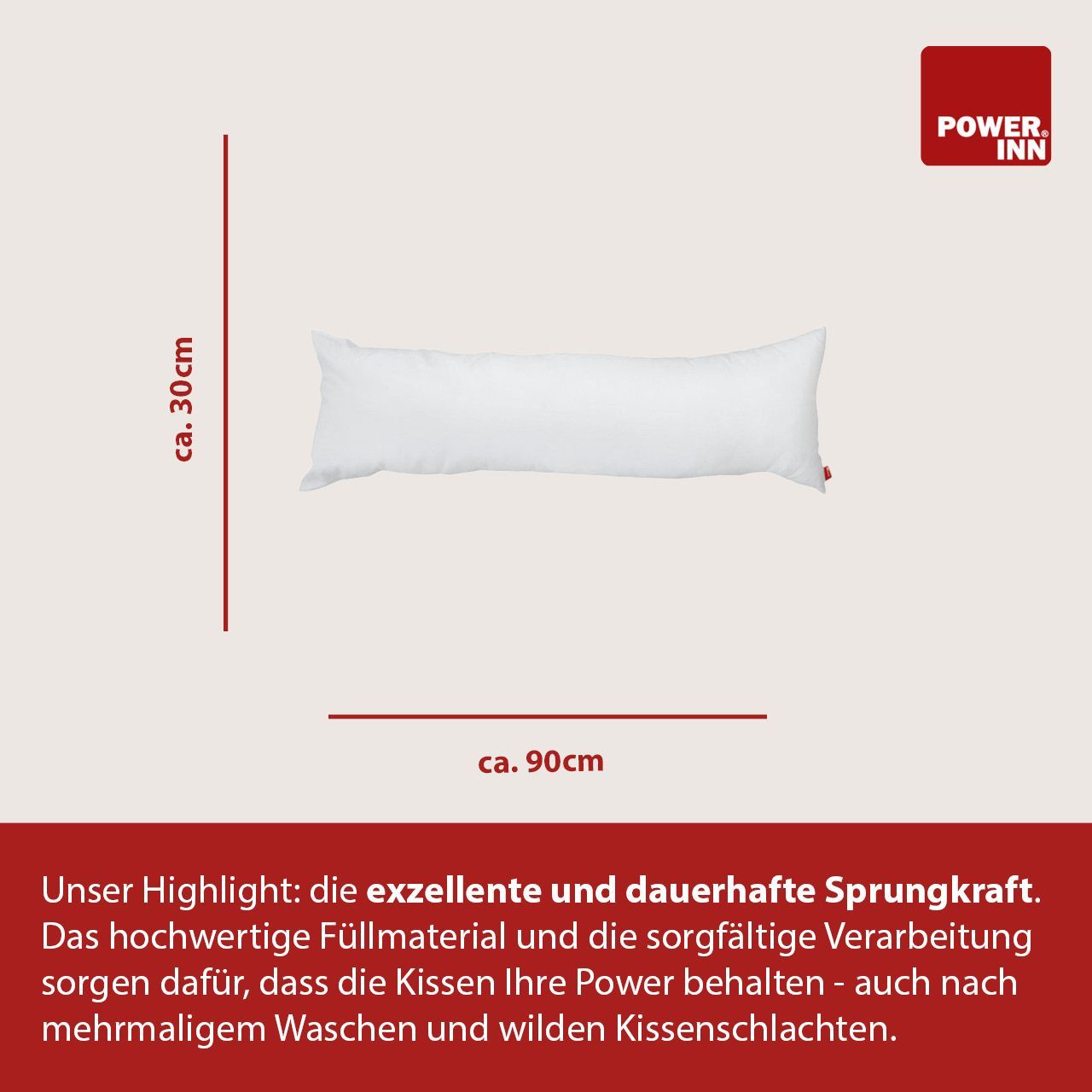 POWER INN Innenkissen Polyester | 30 x 90 cm | Kisseninlett | Waschbar
