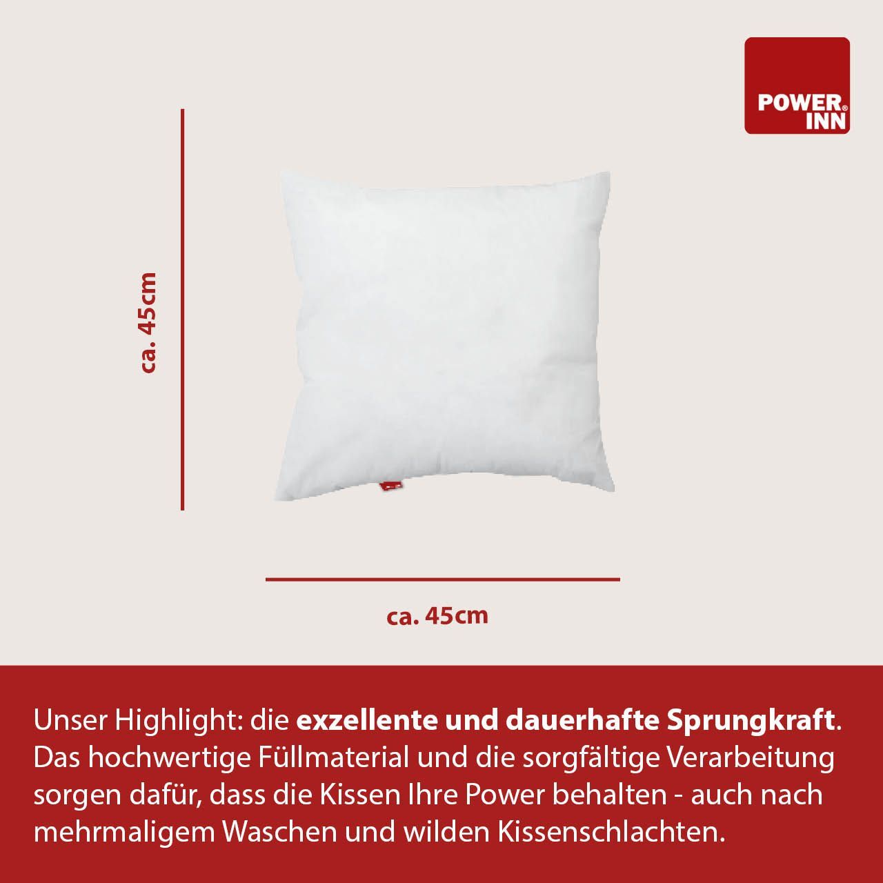 POWER INN Innenkissen Polyester | 45 x 45 cm | Kisseninlett | Waschbar