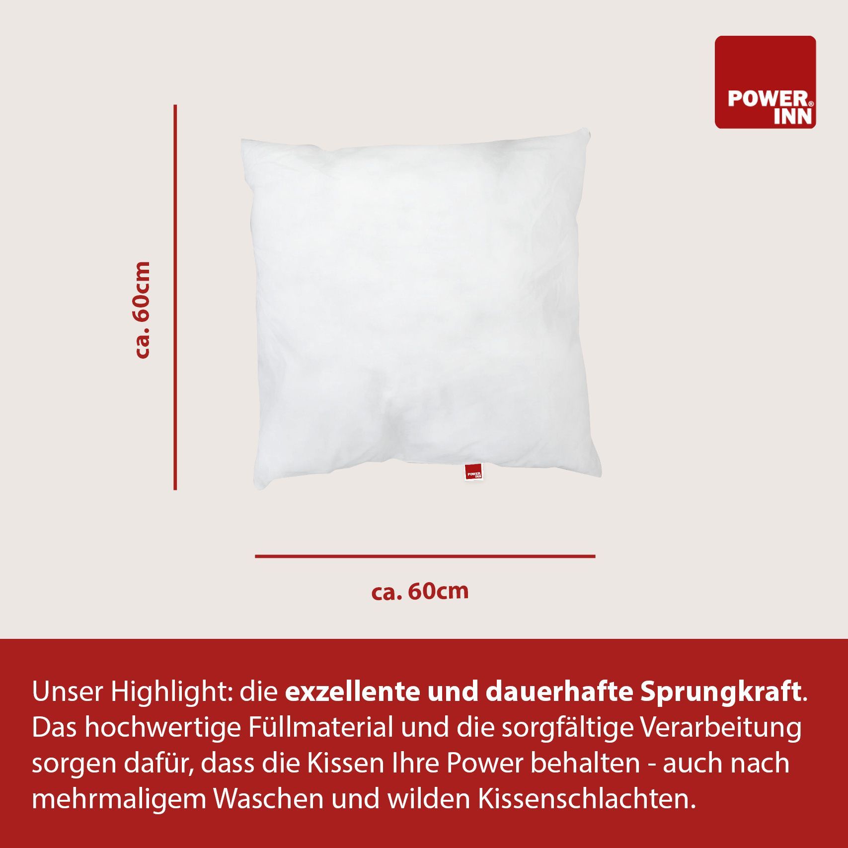 POWER INN Innenkissen Polyester | 60 x 60 cm | Kisseninlett | Waschbar