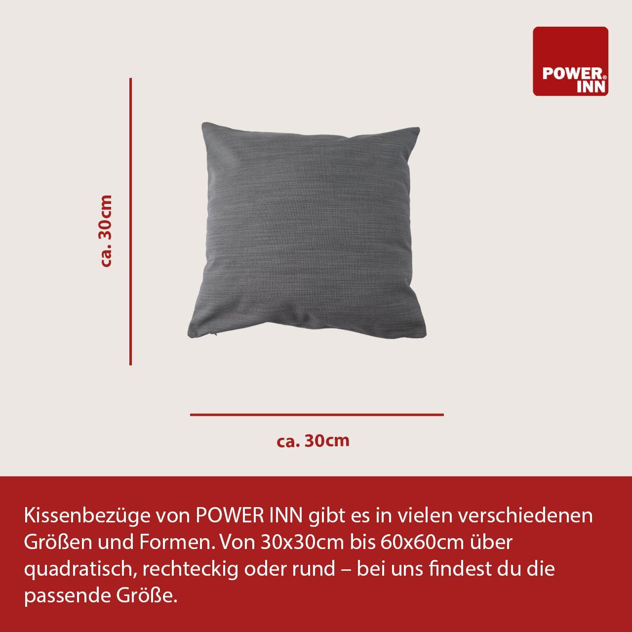 POWER INN Kissenbezug | 30x30cm | Hellgrau | Polsterstoff | Waschbar