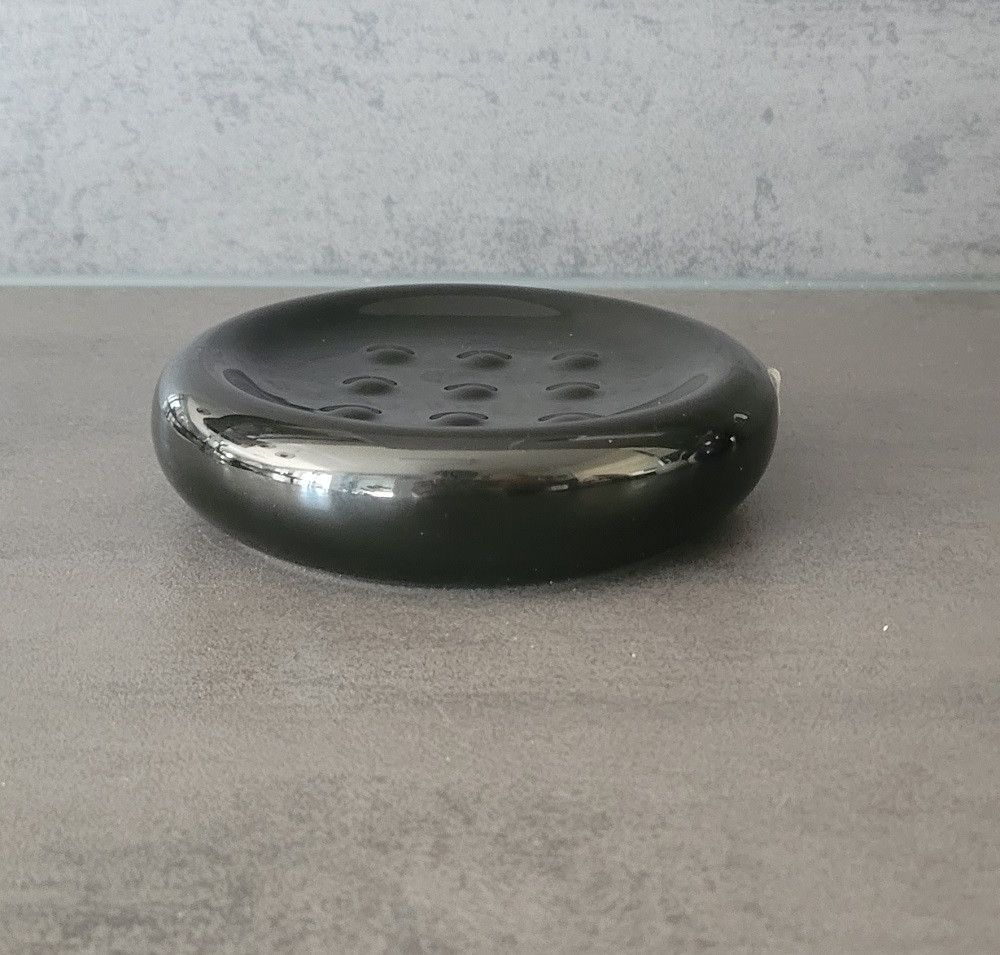 Kleine Wolke Power Schwarz Seifenschale rund. Steinzeug mit glänzender Oberfläche