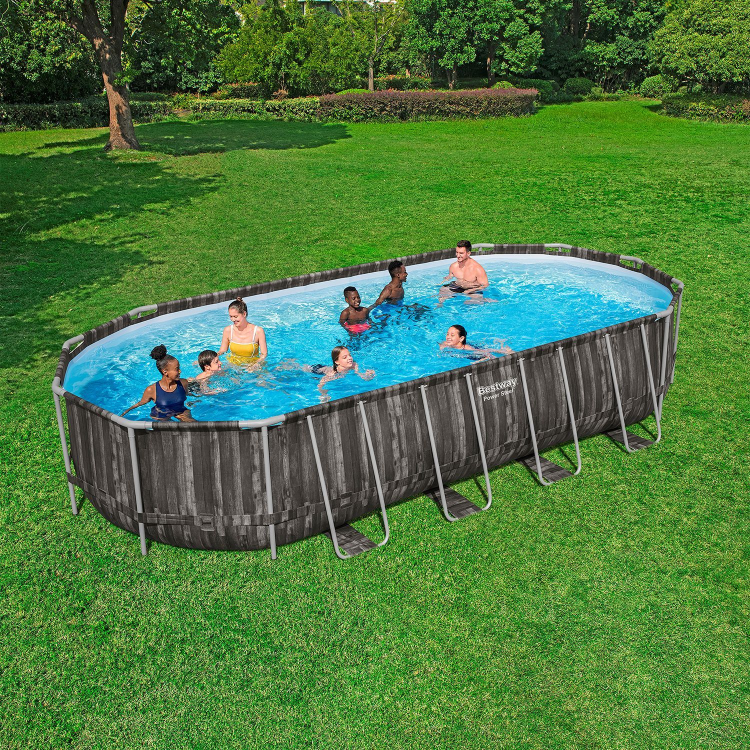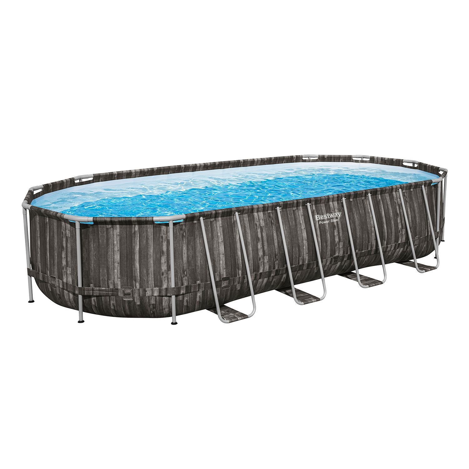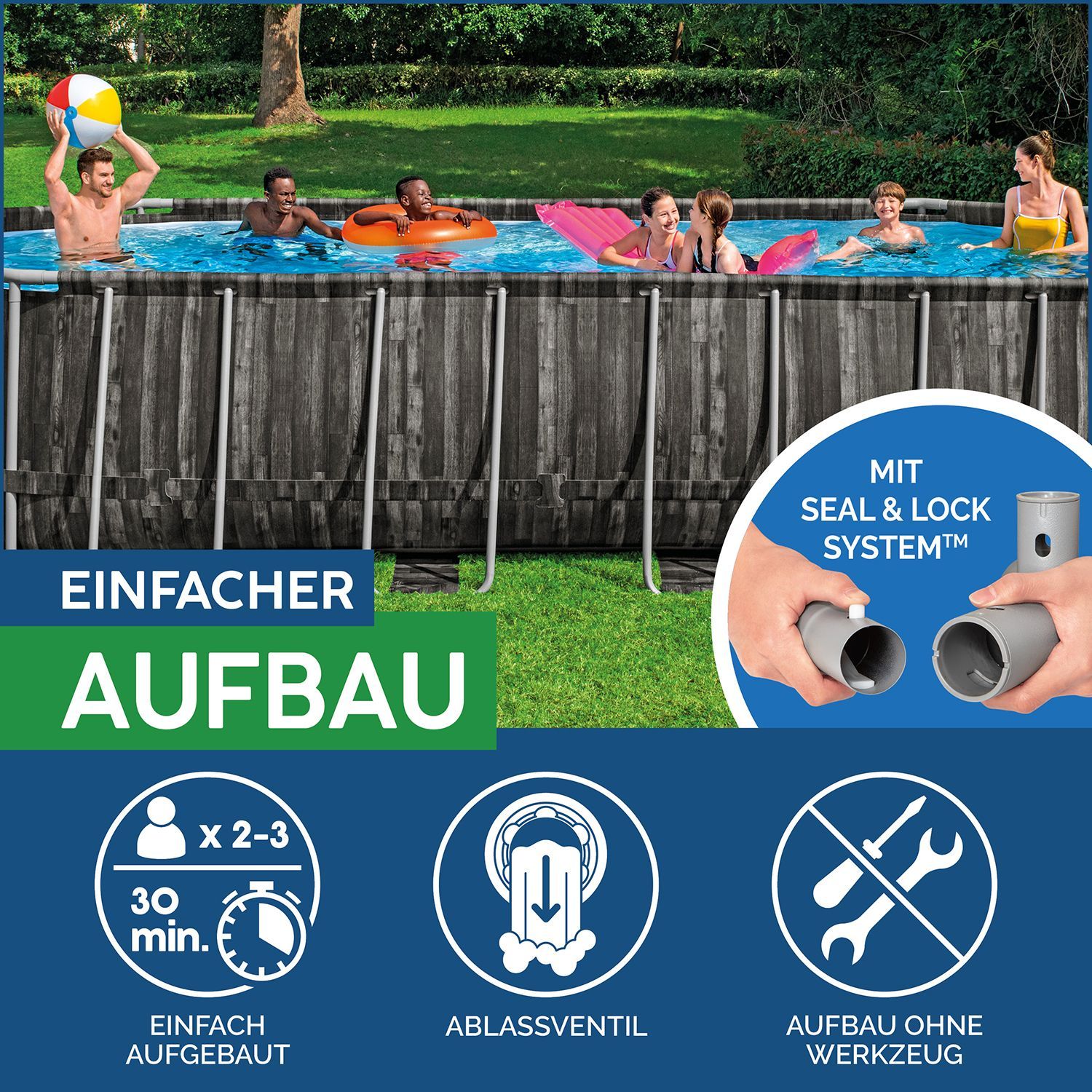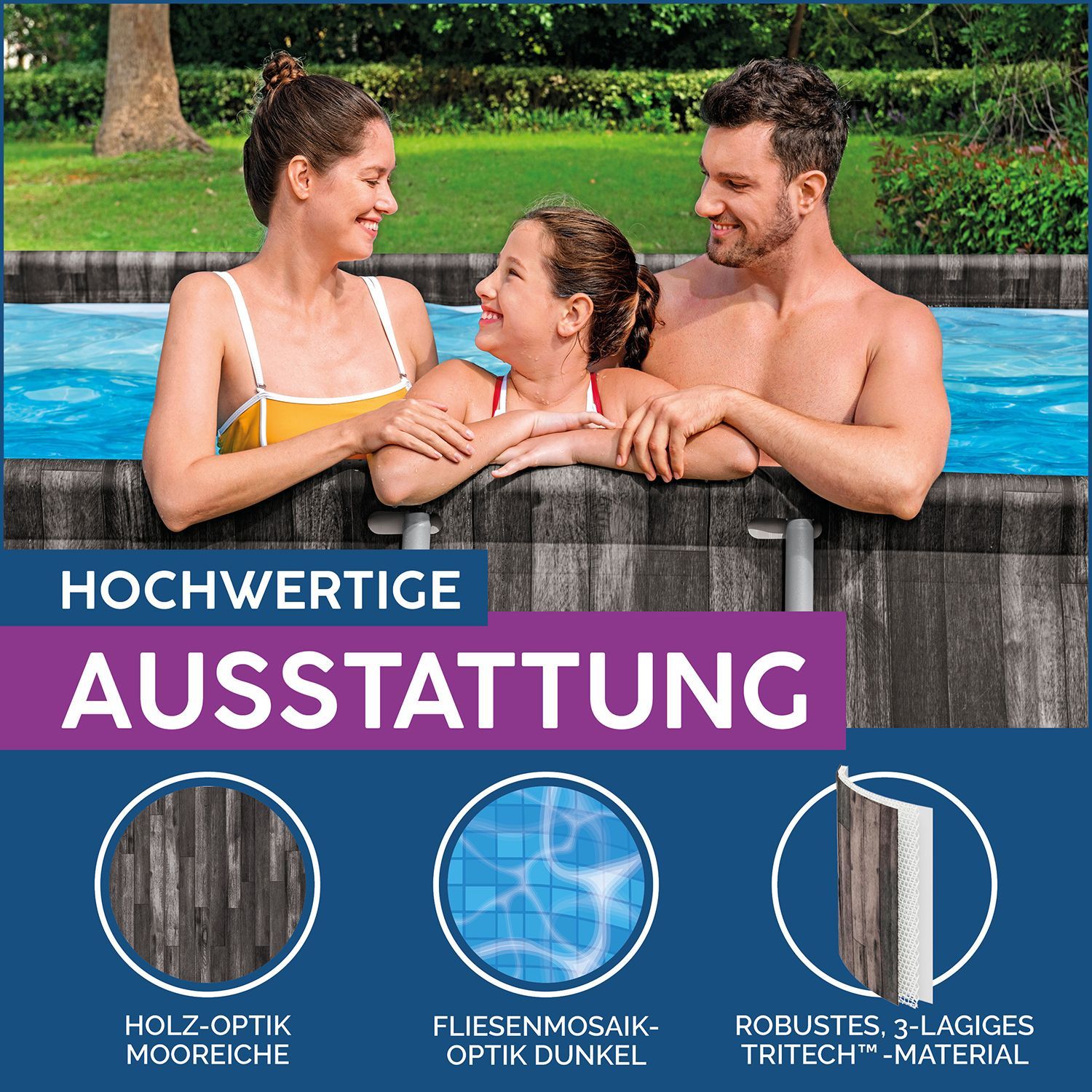 Bestway Power Steel™ Frame Pool Komplett-Set mit Filterpumpe 732 x 366 x 132 cm, Holz-Opti