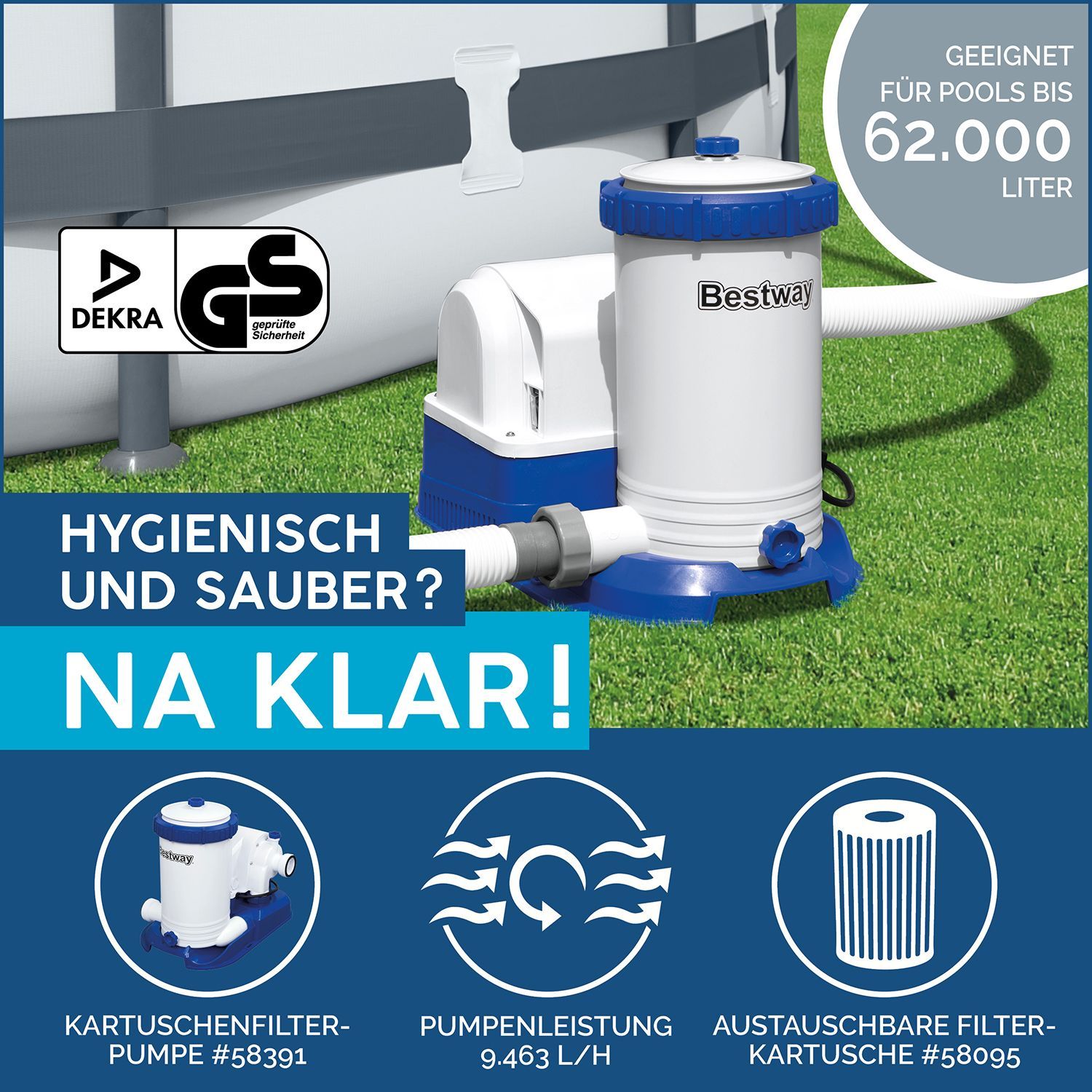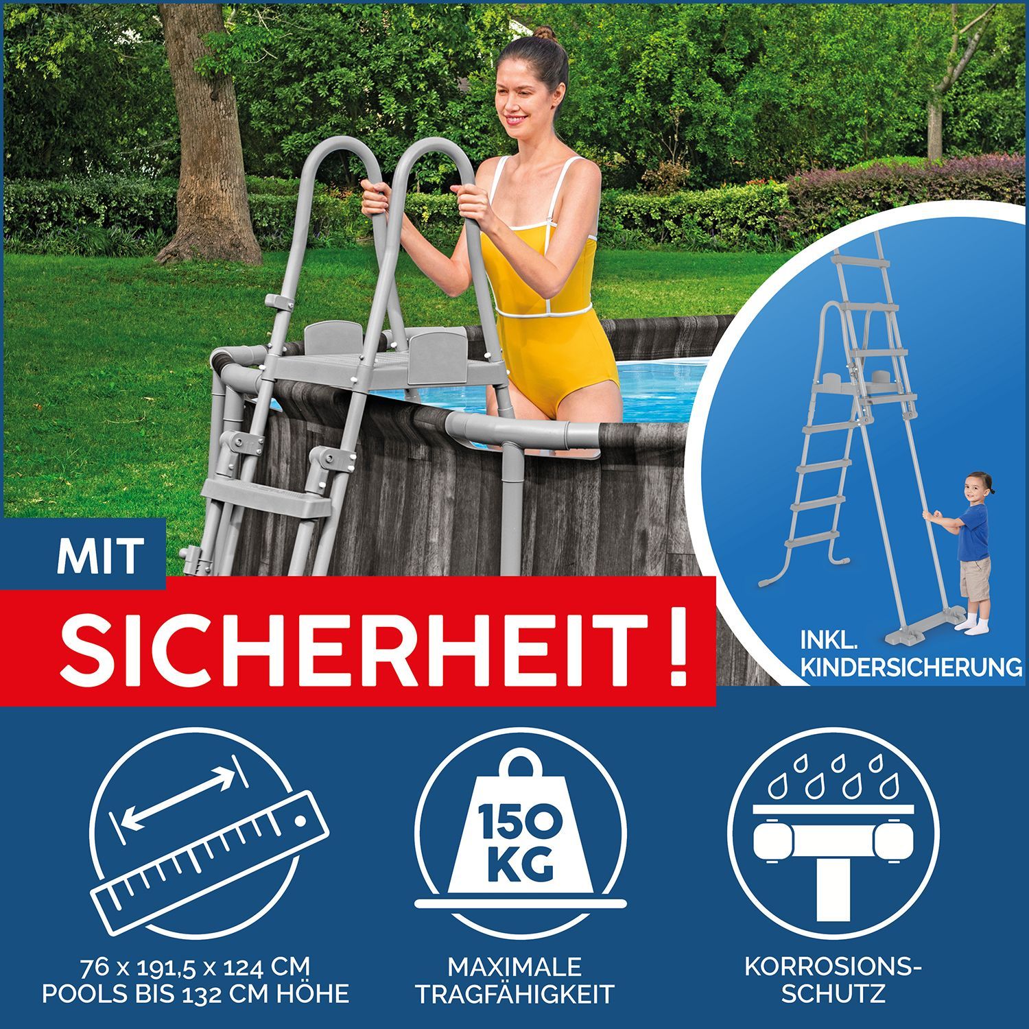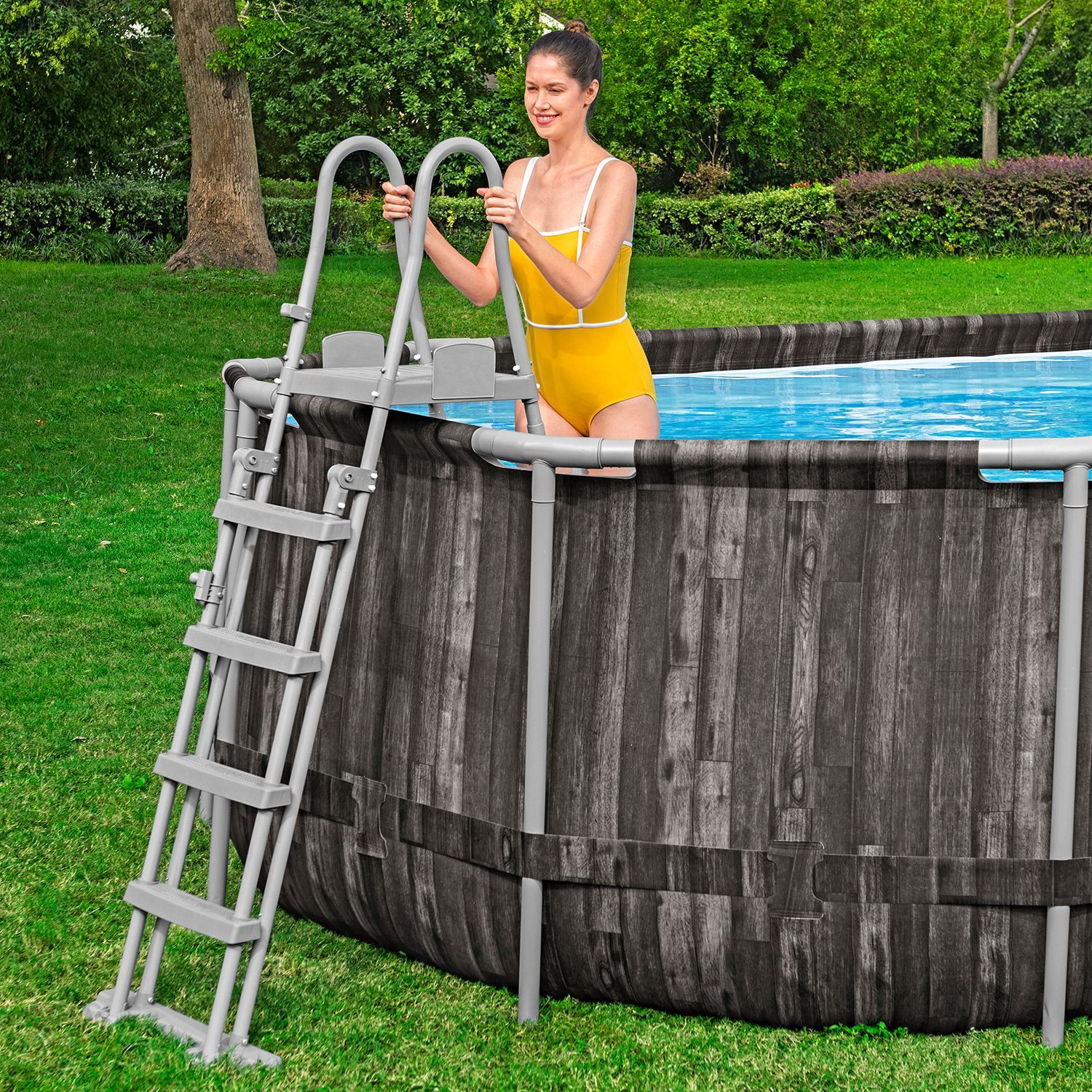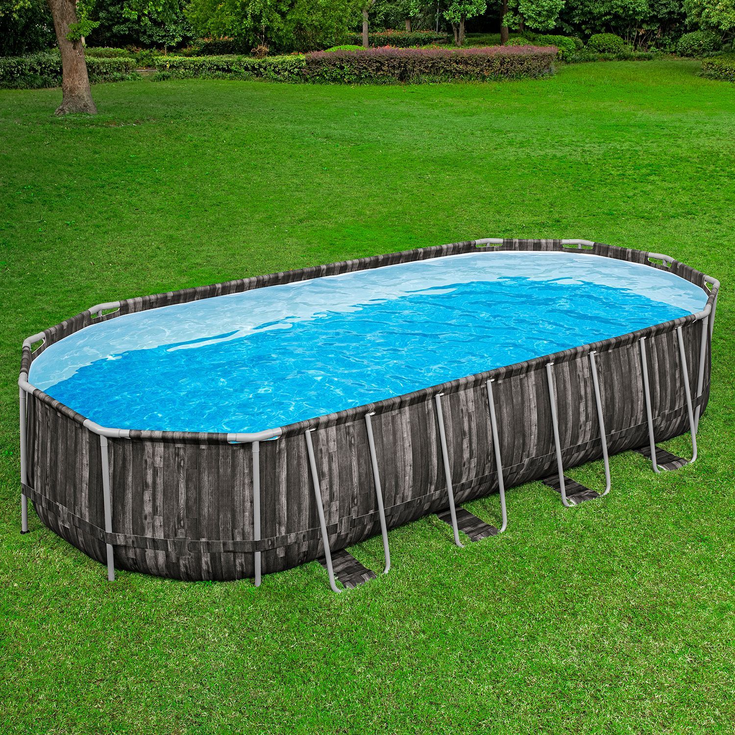 Bestway Power Steel™ Frame Pool Komplett-Set mit Filterpumpe 732 x 366 x 132 cm, Holz-Opti