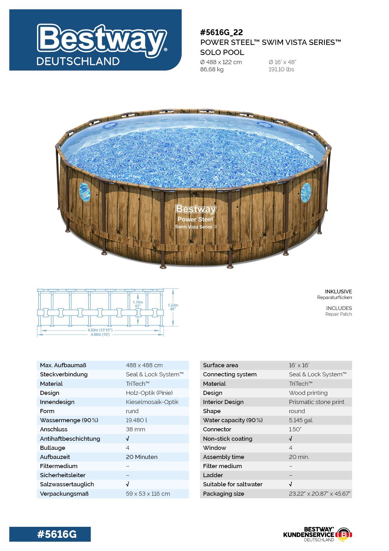 Bestway Power Steel™ Swim Vista Series™ Solo Pool ohne Zubehör Ø 488 x 122 cm, Holz-Optik