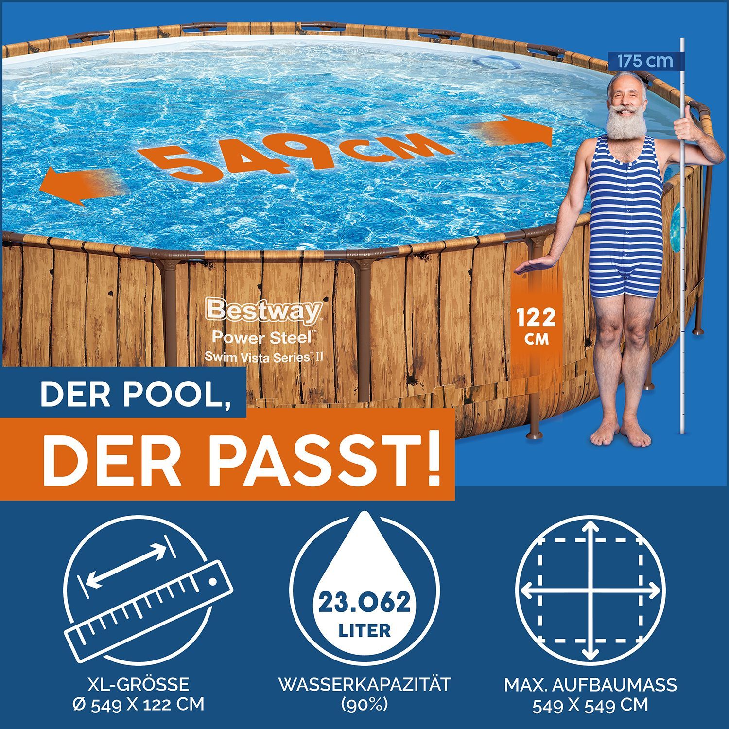 Bestway Power Steel™ Swim Vista Series™ Solo Pool ohne Zubehör Ø 549 x 122 cm, Holz-Optik