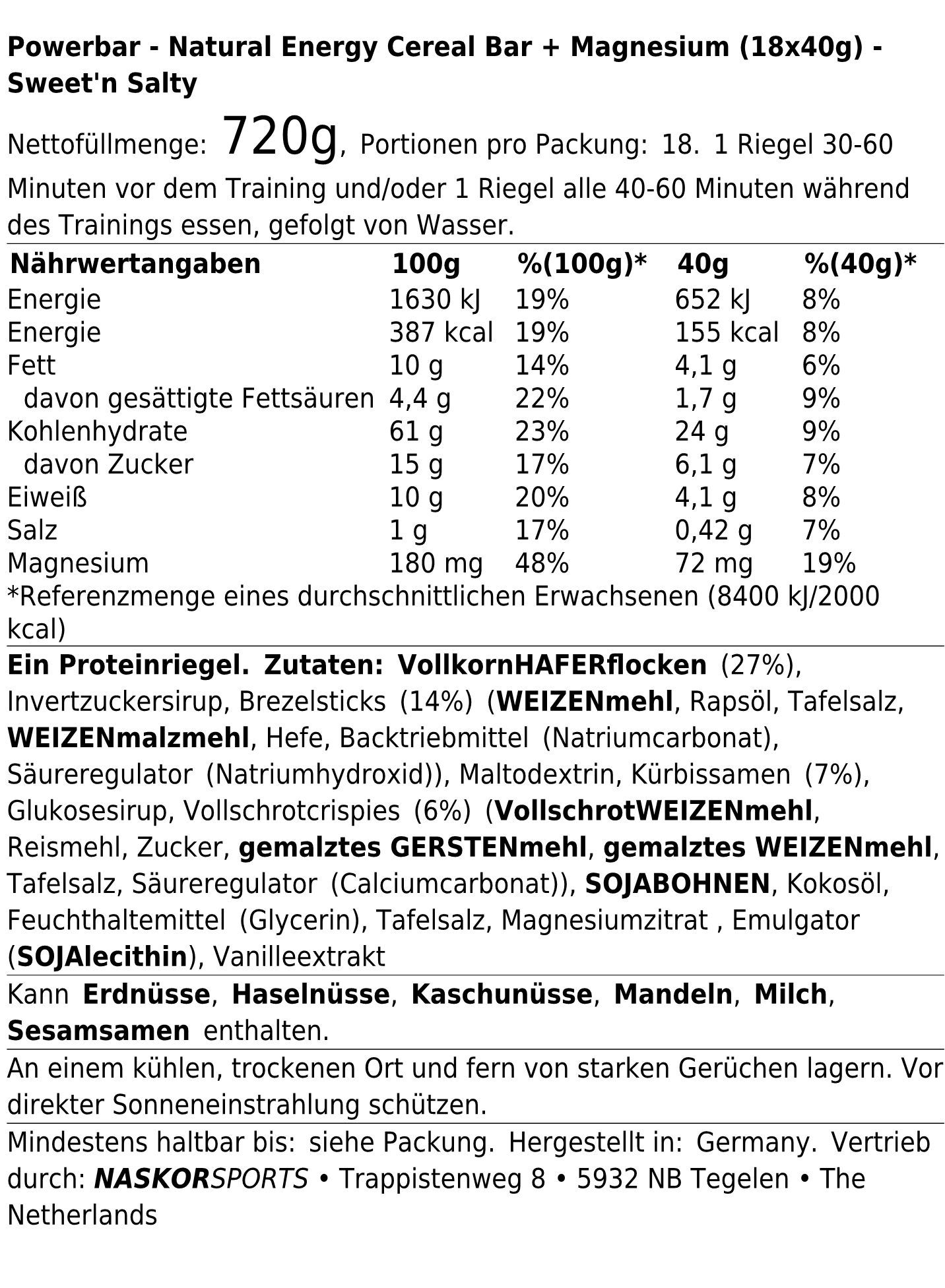 Powerbar Powerbar Natural Energy Cereal Bar + Magnesium (18x40g) Sweetn Salty