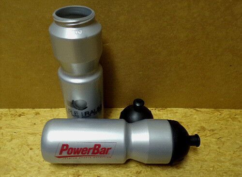 PowerBar Sport Trinkflasche 0,75l silber Wasserflasche Freizeit Fitness Werbung
