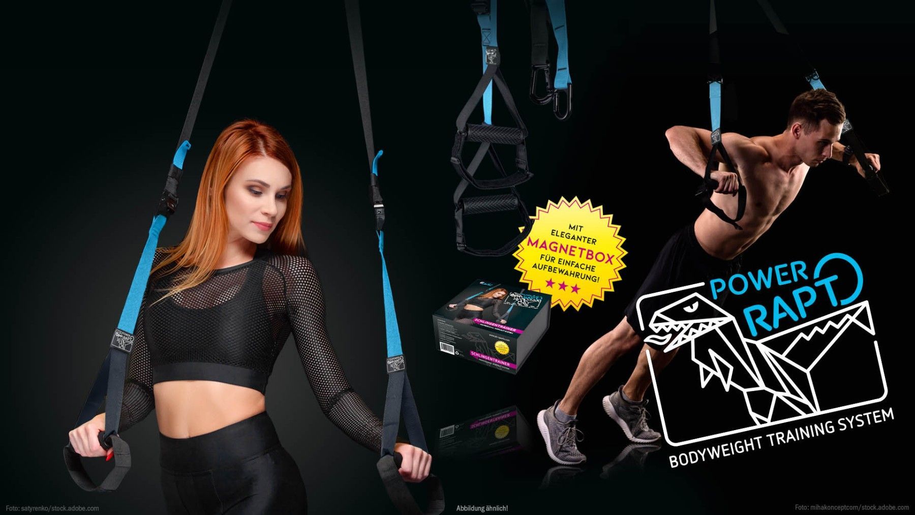 PowerRapto Schlingentrainer Bodyweight Training System verstellbare Fußschlaufen NEU!