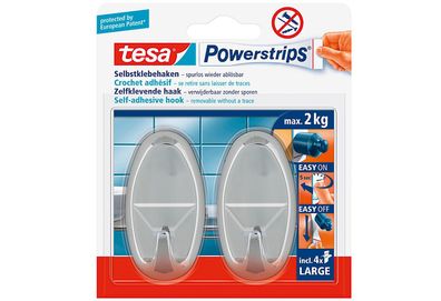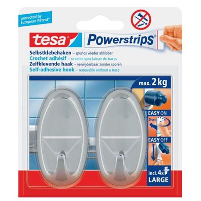 • tesa Powerstrips Haken Large 58063, 2 x 2 kg, Oval, matt- chrom
