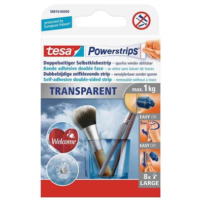 • tesa Powerstrips Large Transparent Selstklebestreifen Inhalt 8 Stück