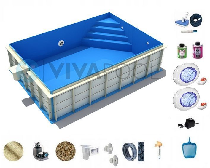 PP Skimmer Pool 7,0x3,00x1,5m Wärmepumpe Gegenstrom Fertigbecken Vivapool
