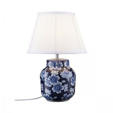 • PR Home 4604717 Tischleuchte Fanny Blau Stoffschirm Weiß 47cm
