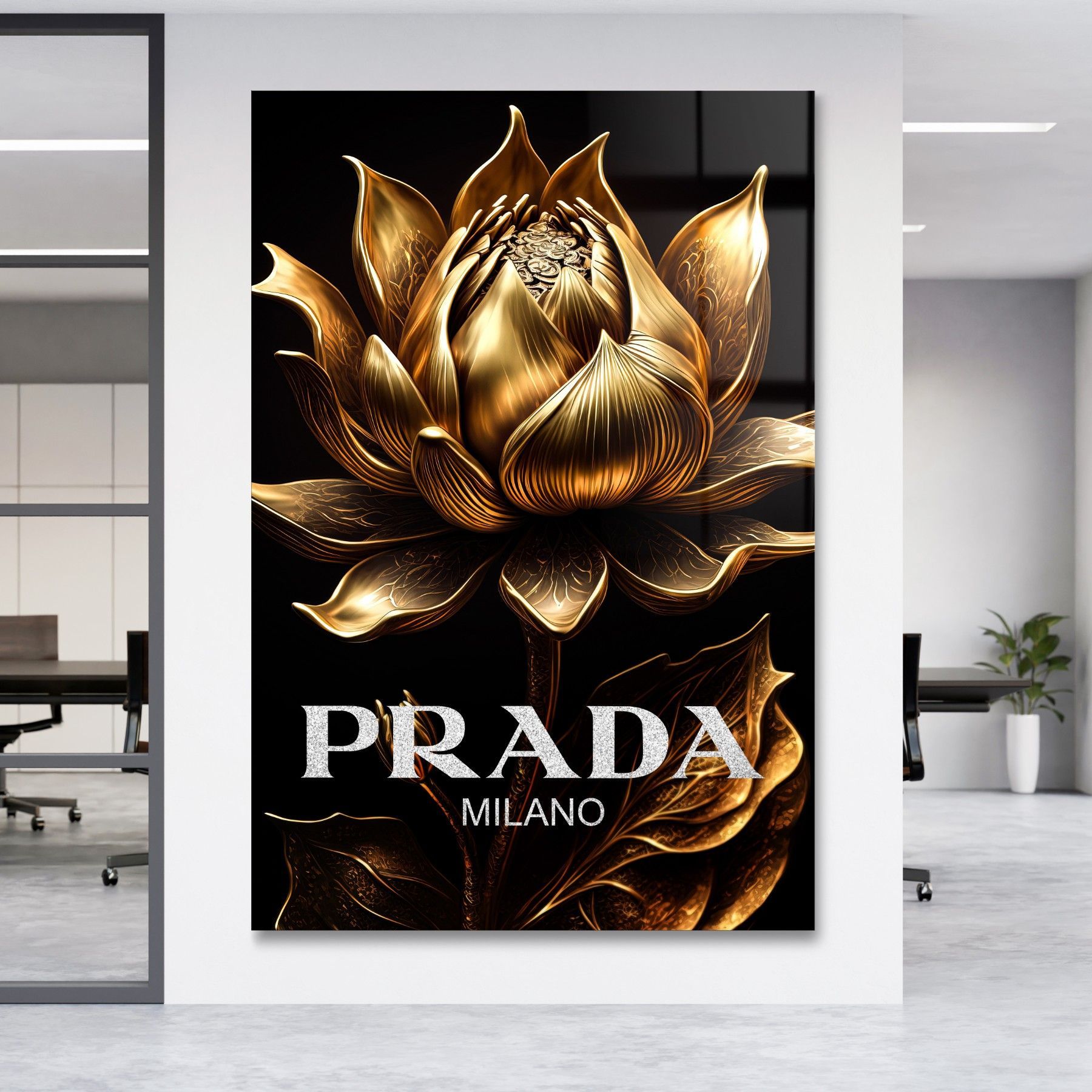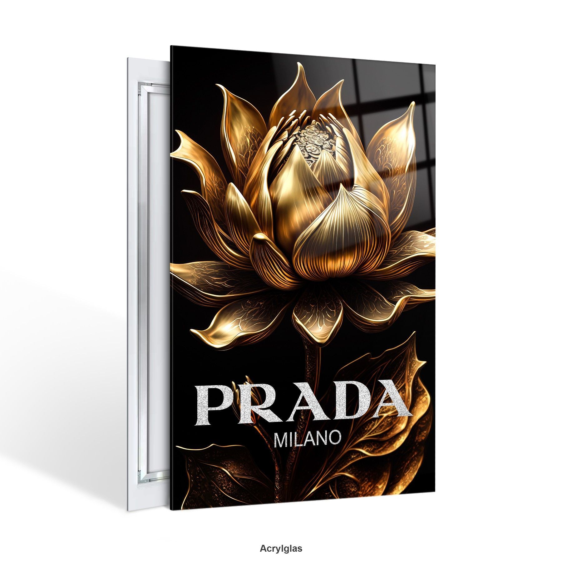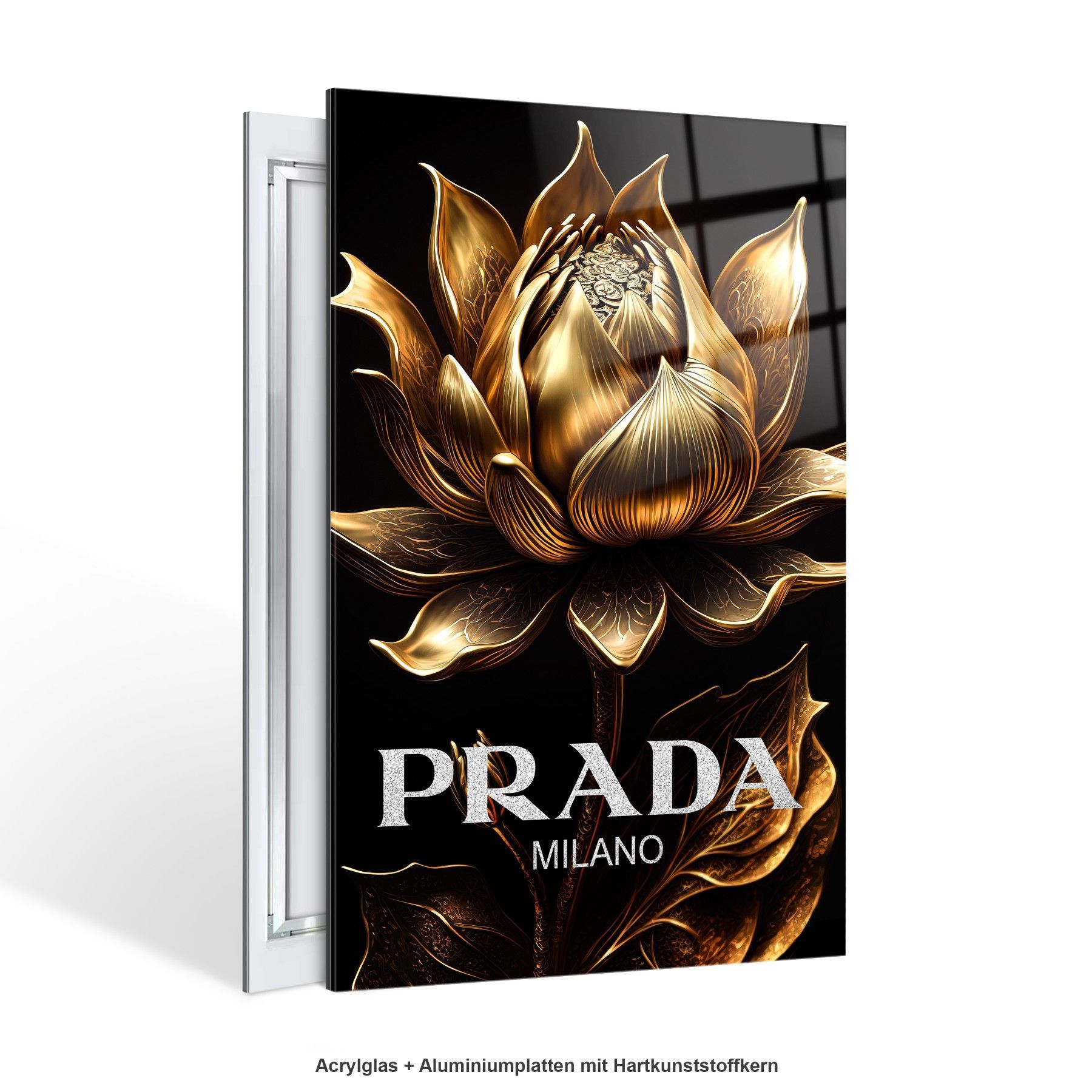 Prada Goldene Blume Fashion Leinwand , Acrylglas + Aluminium , Poster Wandbild