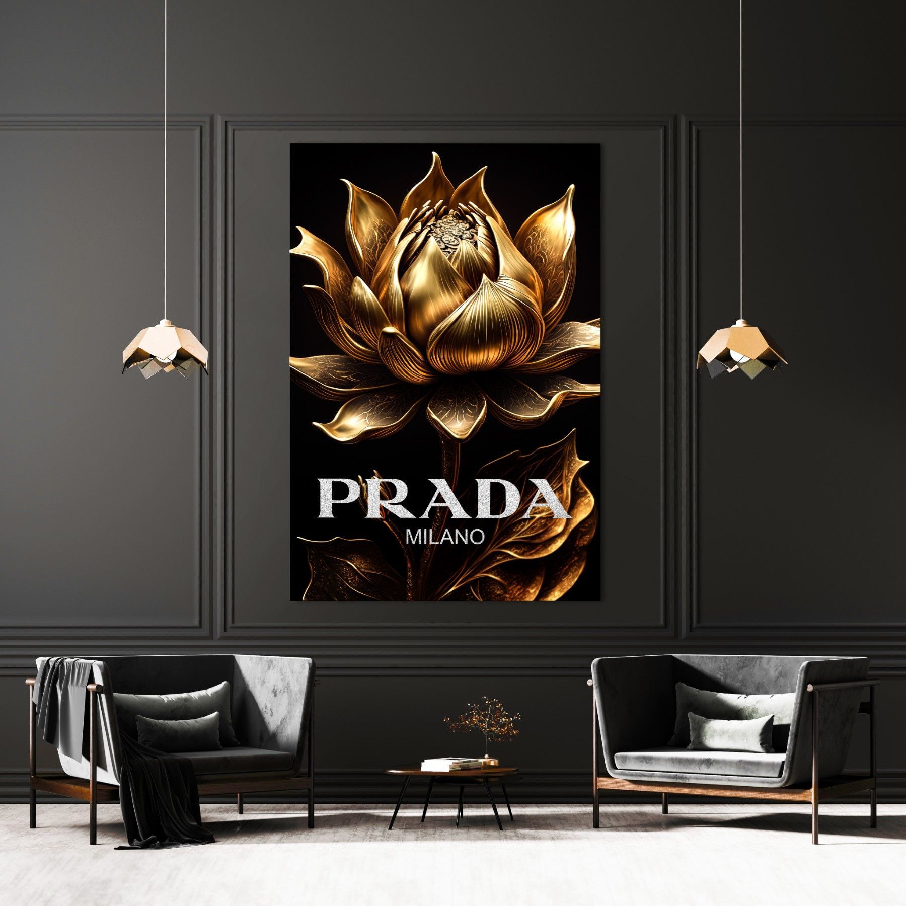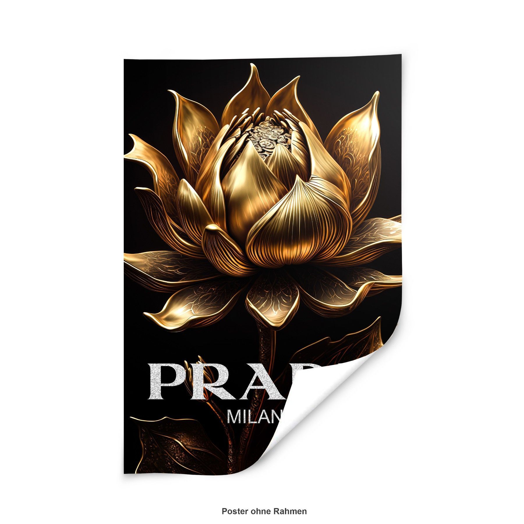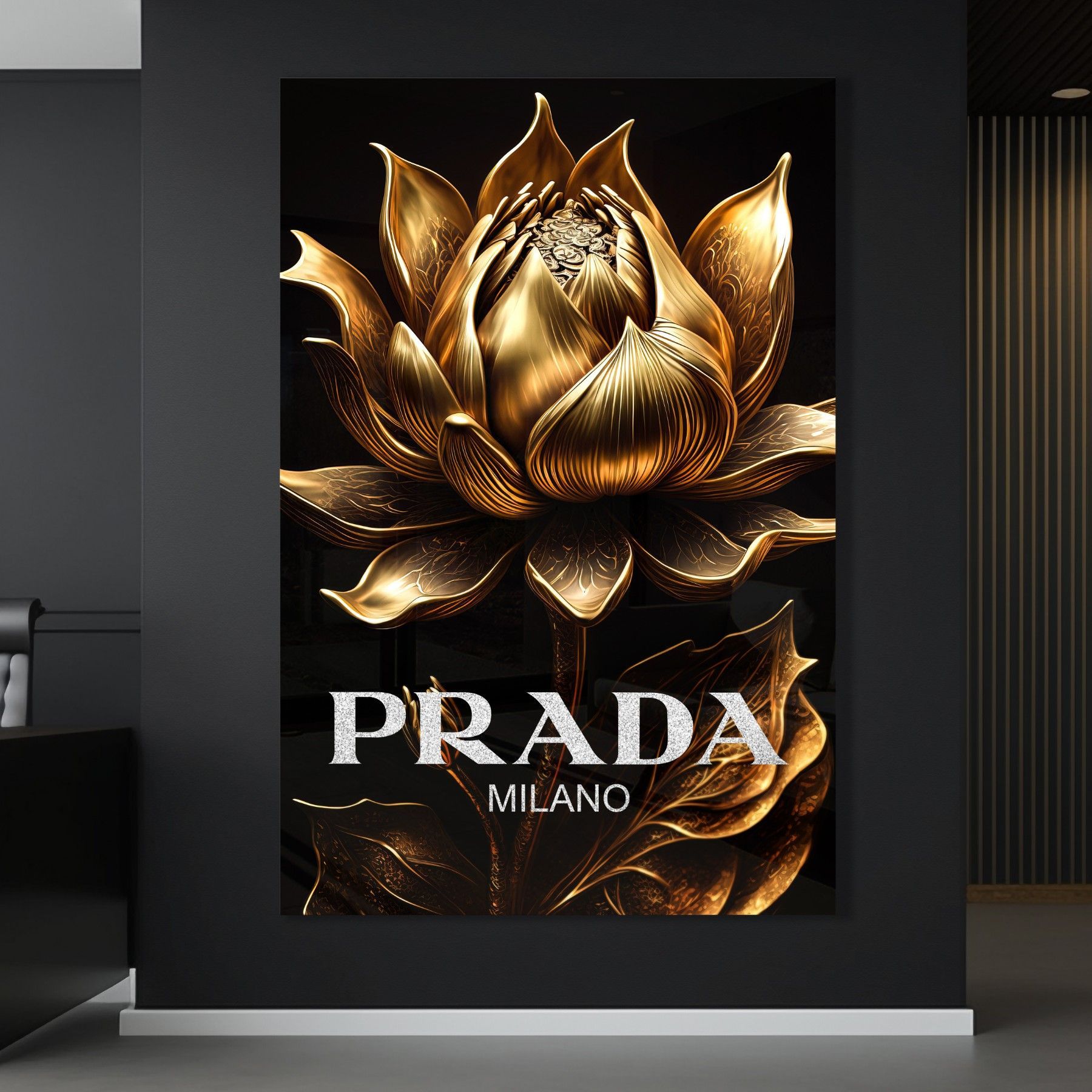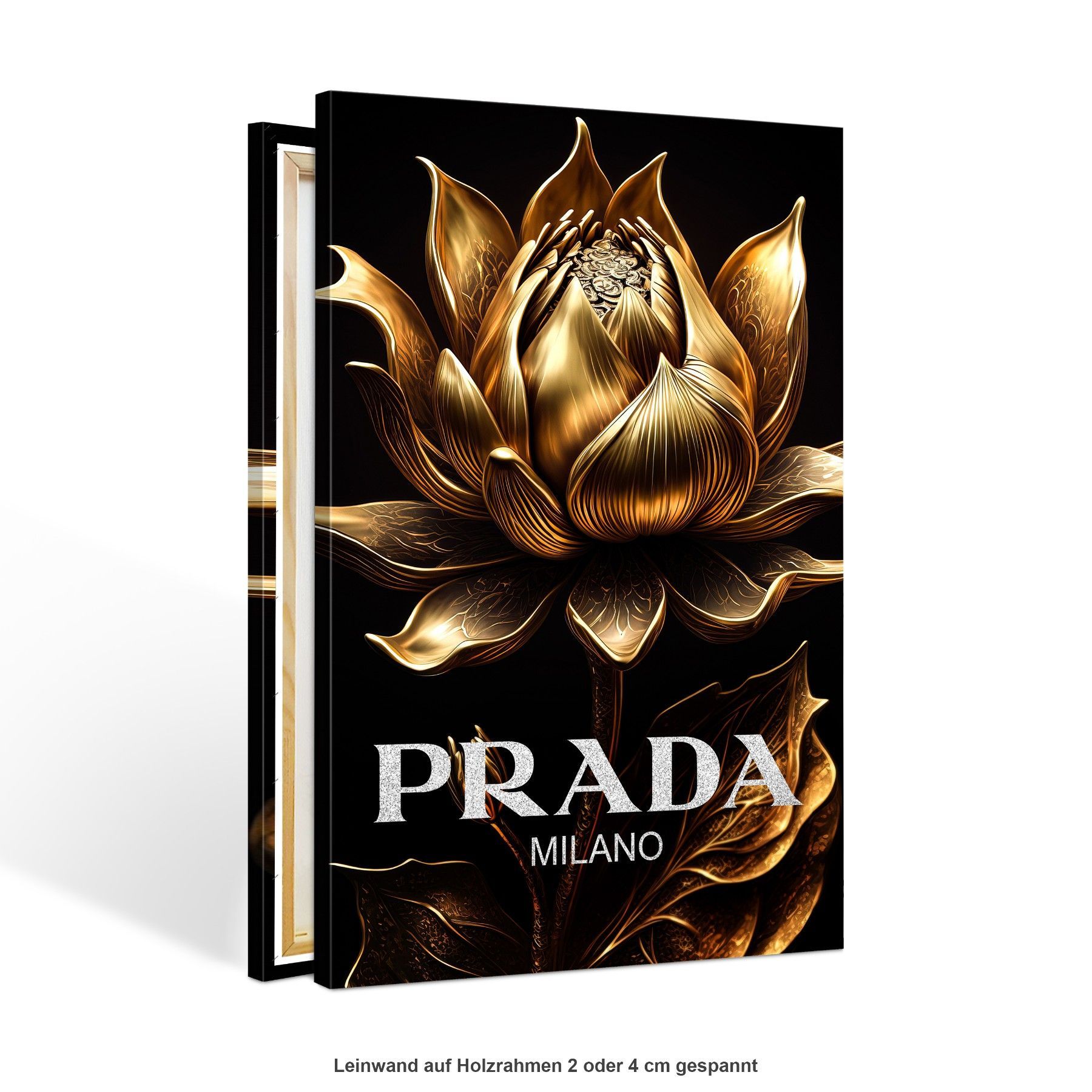 Prada Goldene Blume Fashion Leinwand , Acrylglas + Aluminium , Poster Wandbild