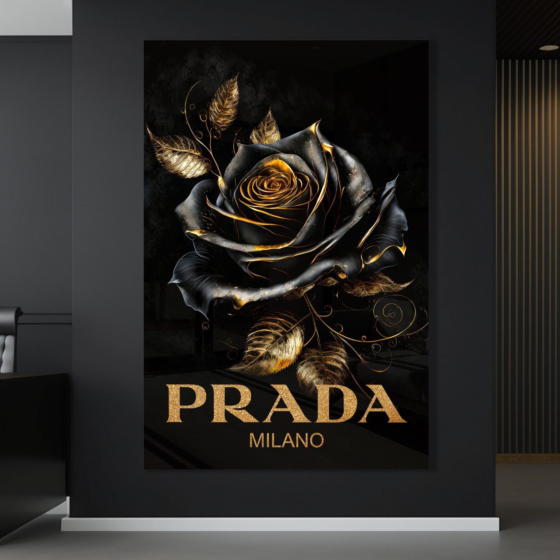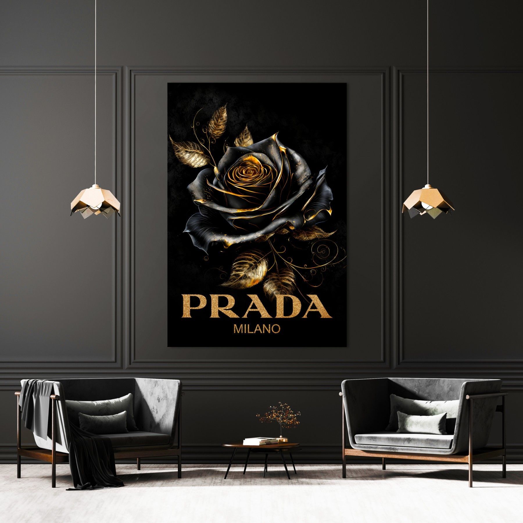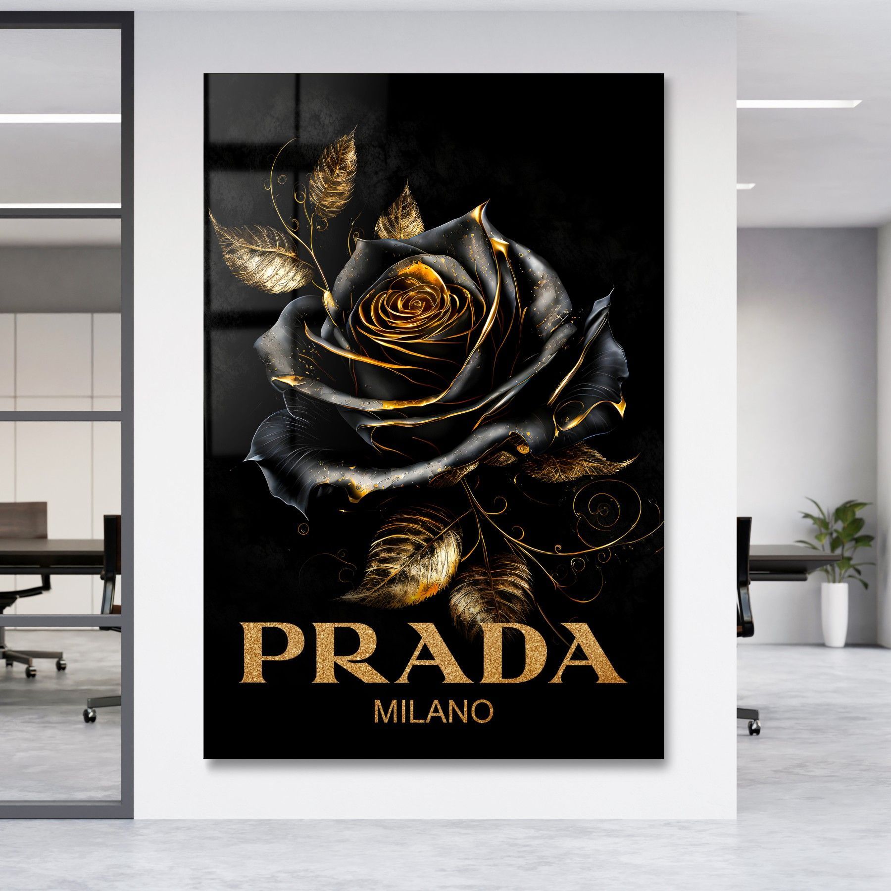 Prada Goldene Blume Fashion Leinwand , Acrylglas + Aluminium , Poster Wandbild , Deco