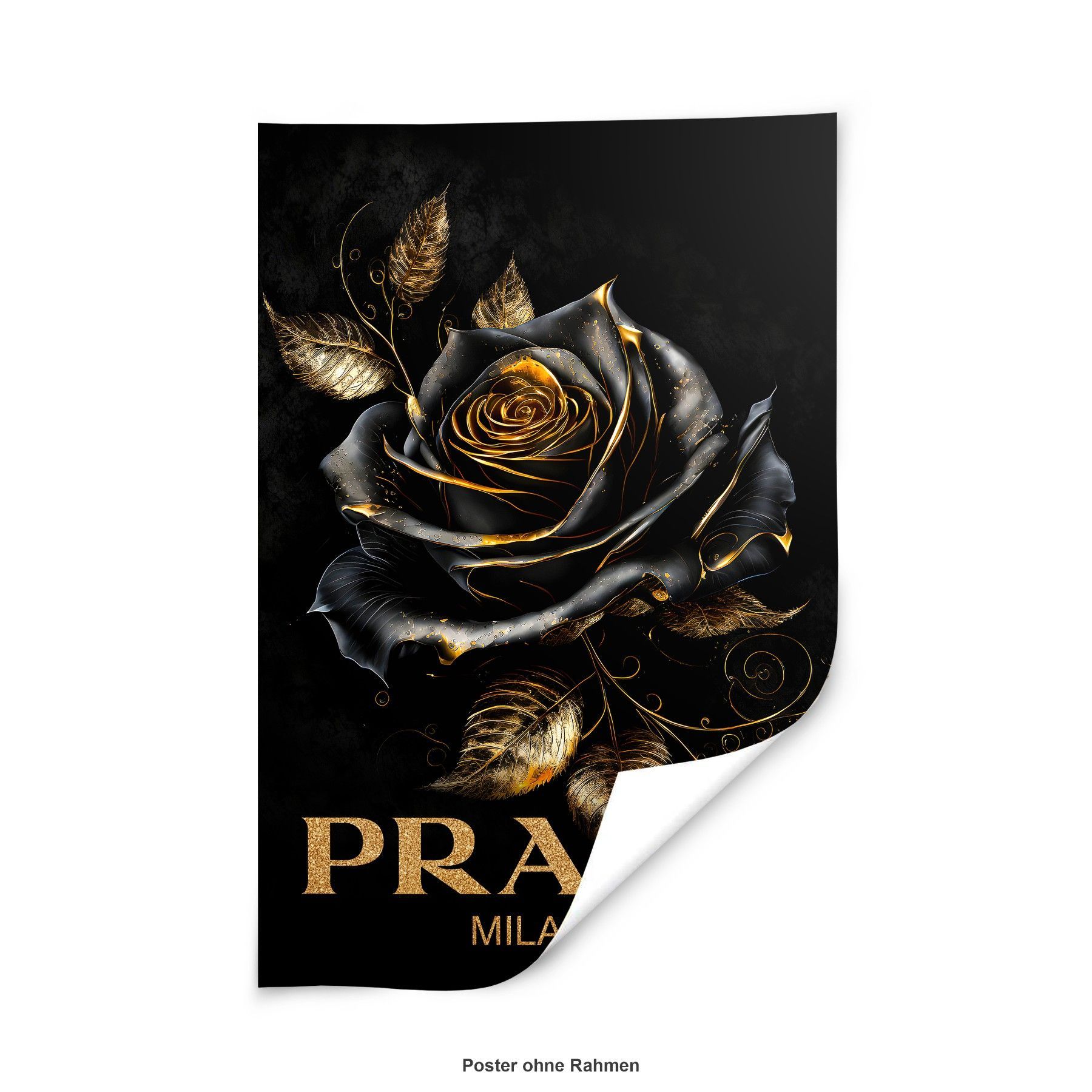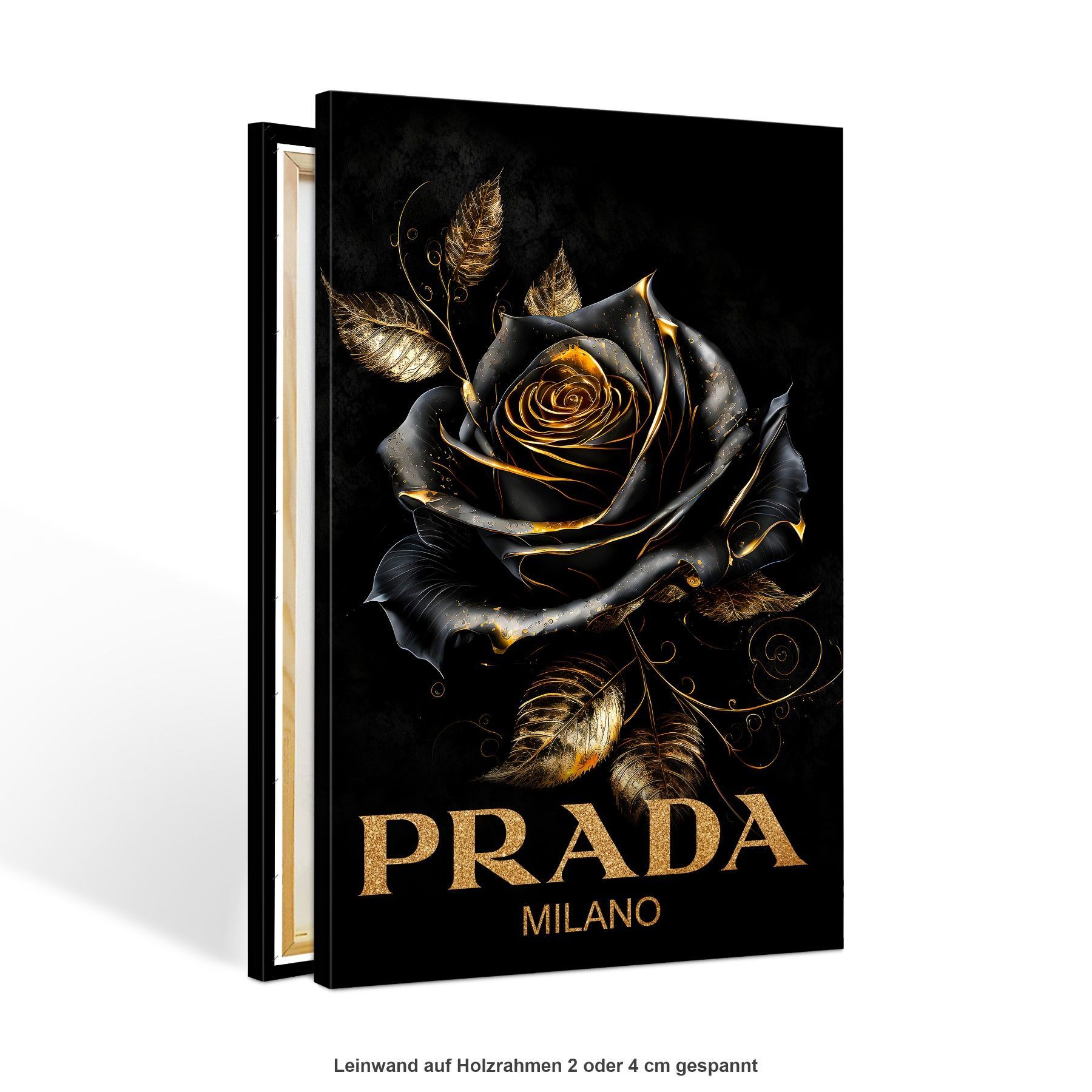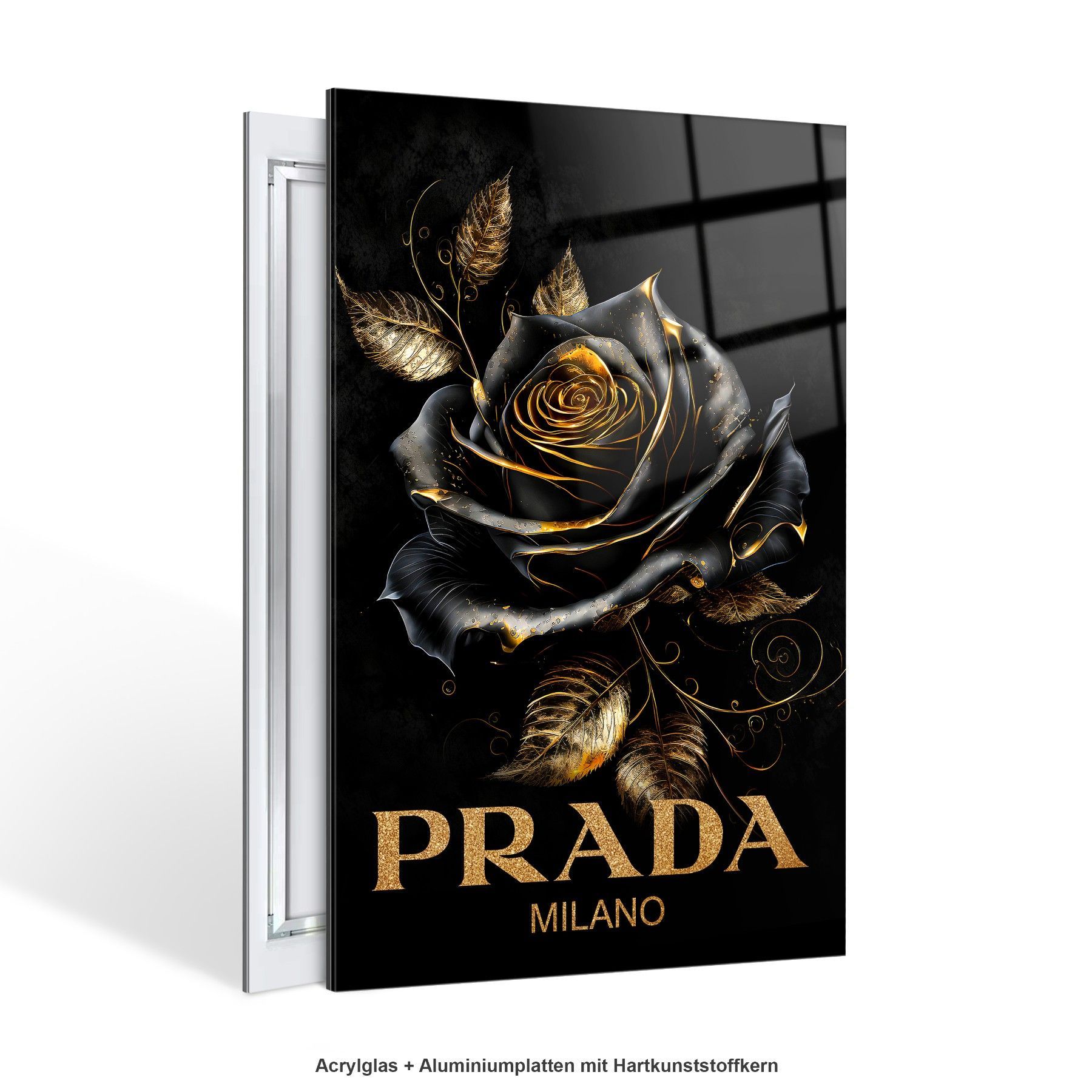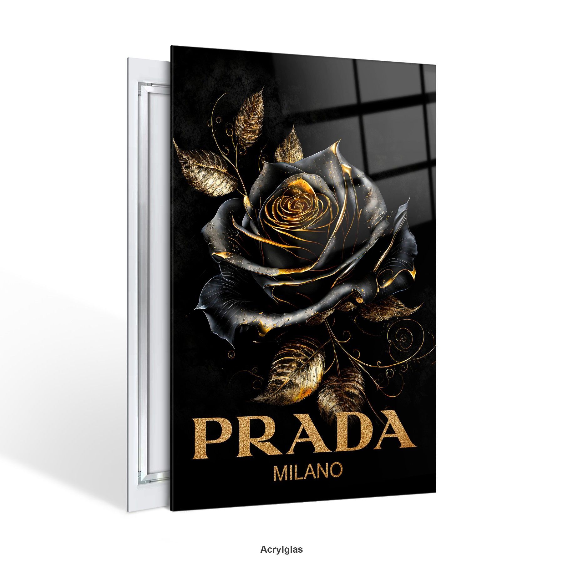 Prada Goldene Blume Fashion Leinwand , Acrylglas + Aluminium , Poster Wandbild , Deco