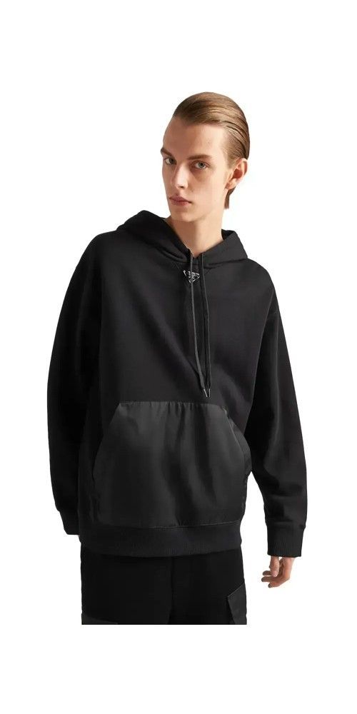 Prada Kapuzenpullover Baumwollfleece Schwarz Herren