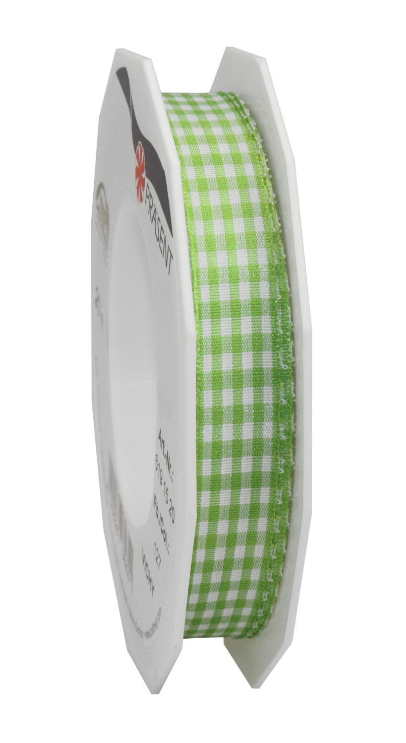 Präsent Motivband Karo Vichy 20-m-Rolle 15 mm apfelgrün/ weiss