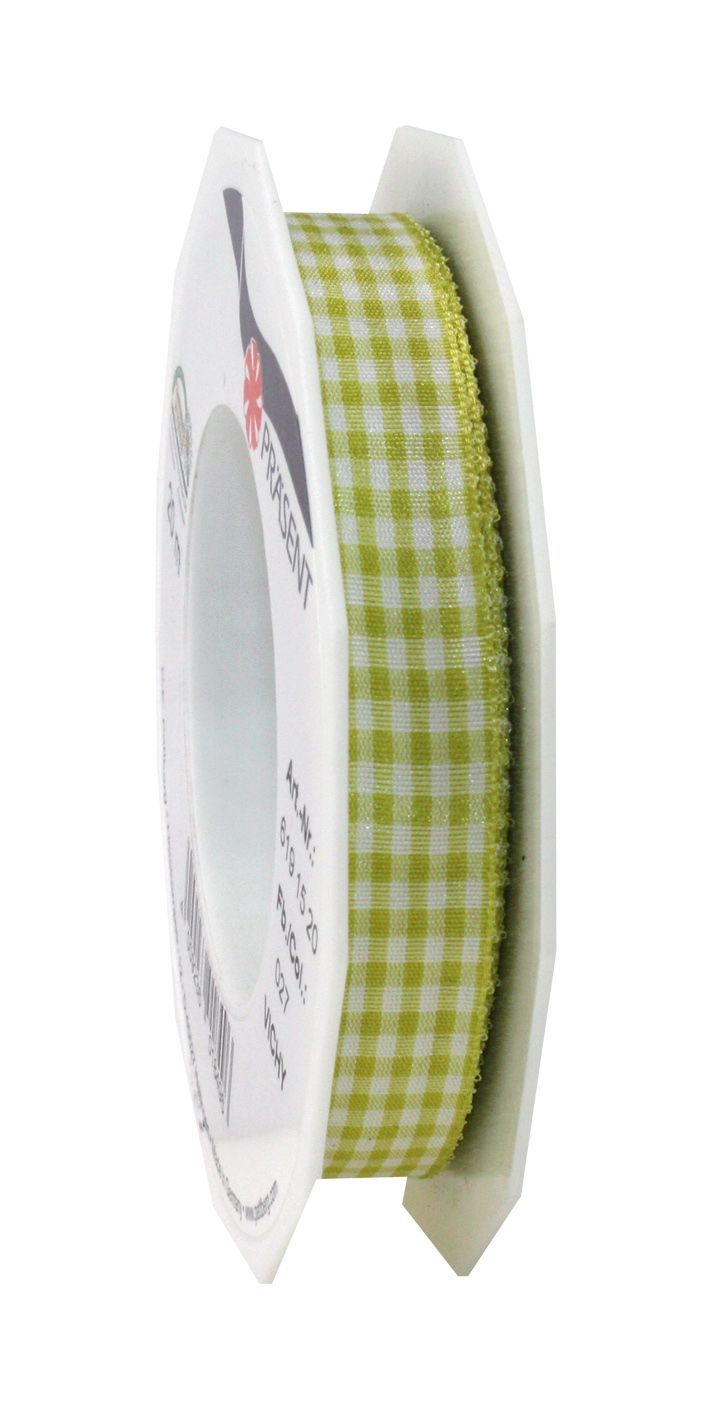 Präsent Motivband Karo Vichy 20-m-Rolle 15 mm limette/ weiss