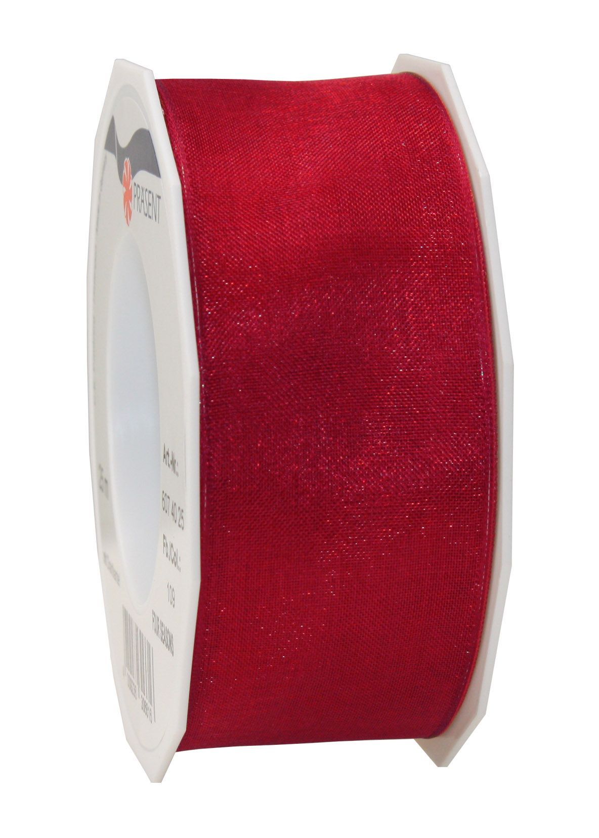 Präsent Organza Four Seasons 25-m-Rolle 40 mm rubinrot mit Drahtkante