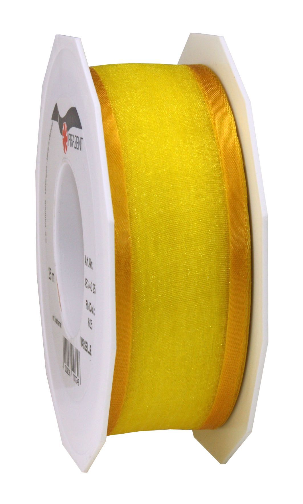 Präsent Organza Marseille 25-m-Rolle 40 mm mit Drahtkante gelb