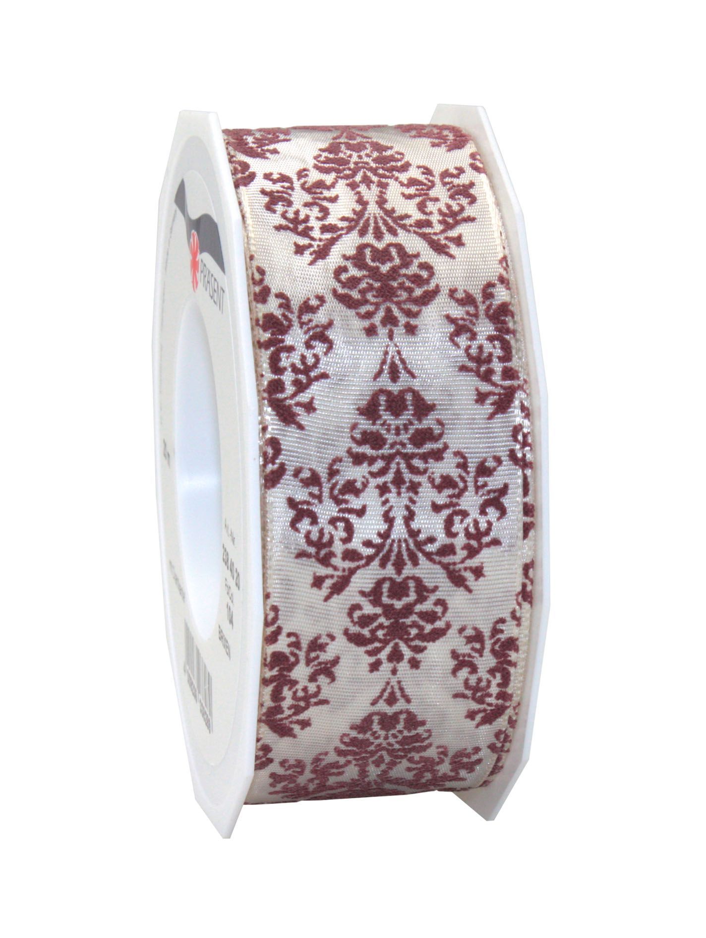 Präsent Ornament mit Draht Brixen 20-m-Rolle 40 mm creme/ altrosa
