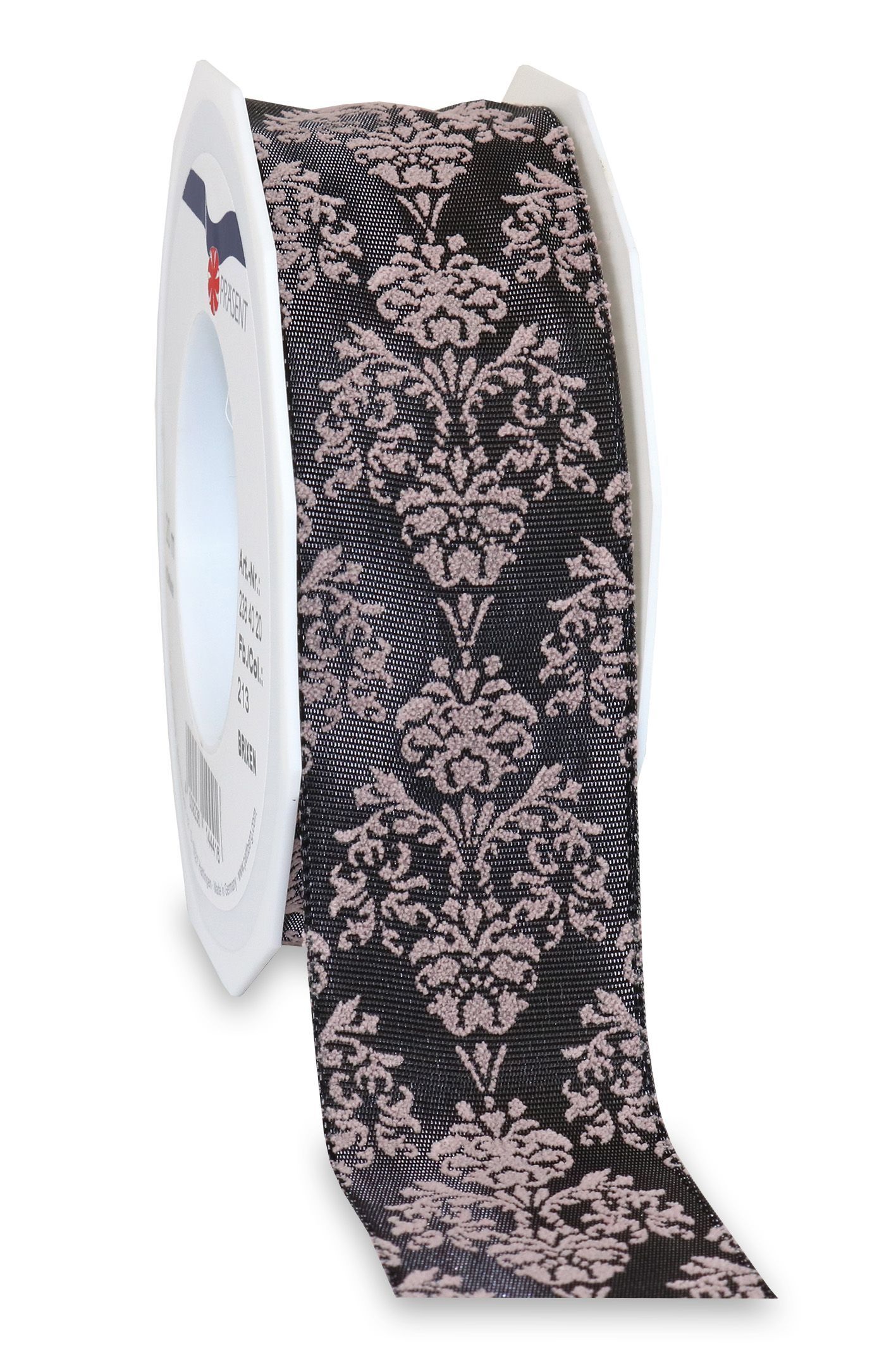 Präsent Ornament mit Draht Brixen 20-m-Rolle 40 mm graphit/ altrosa