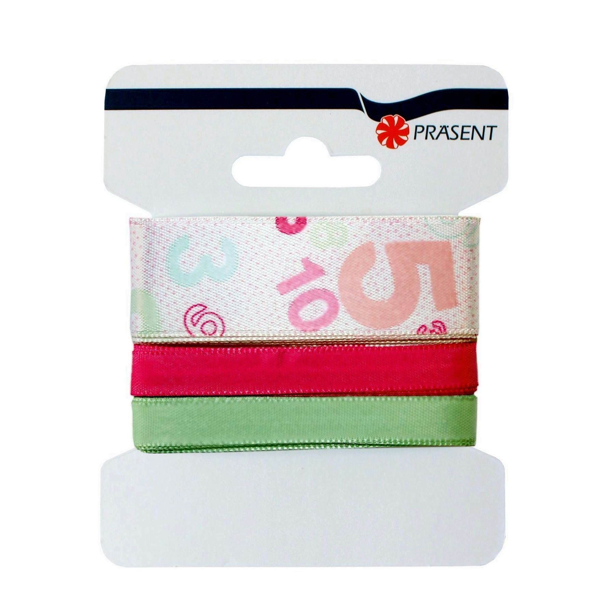 Roth Präsent Schleifenband Numbers-Rosa 3er Karte 25/1/1cmx45m