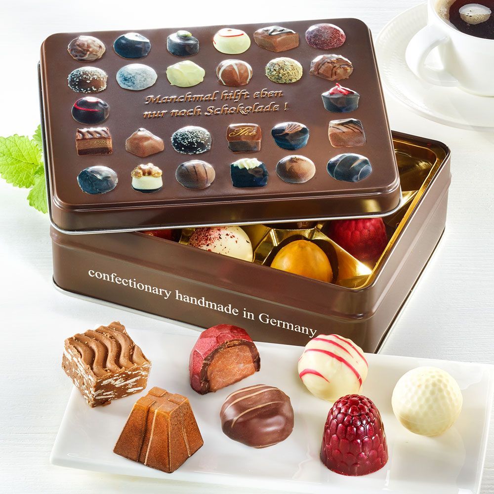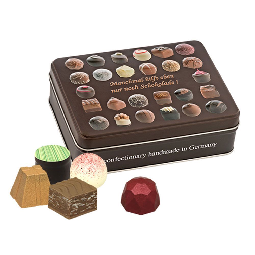 Präsentdose "Manchmal hilft eben nur noch Schokolade!"
