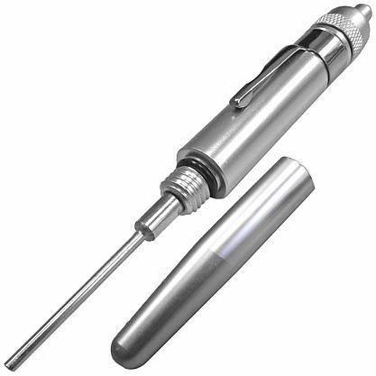 Leichtigkeit und Präzision zeichnen den Öler aus. Dank der besonders dünnen aber dennoch stabilen Spitze kommen Sie in jedes noch so kleine Eckchen. gefertigt aus leichtem, stabilem Aluminium Präzisionswerkzeug Spitzengröße nur 2,5 mm sehr genaue Dosierung möglich , da 1:1 Druckumsetzung mit solidem