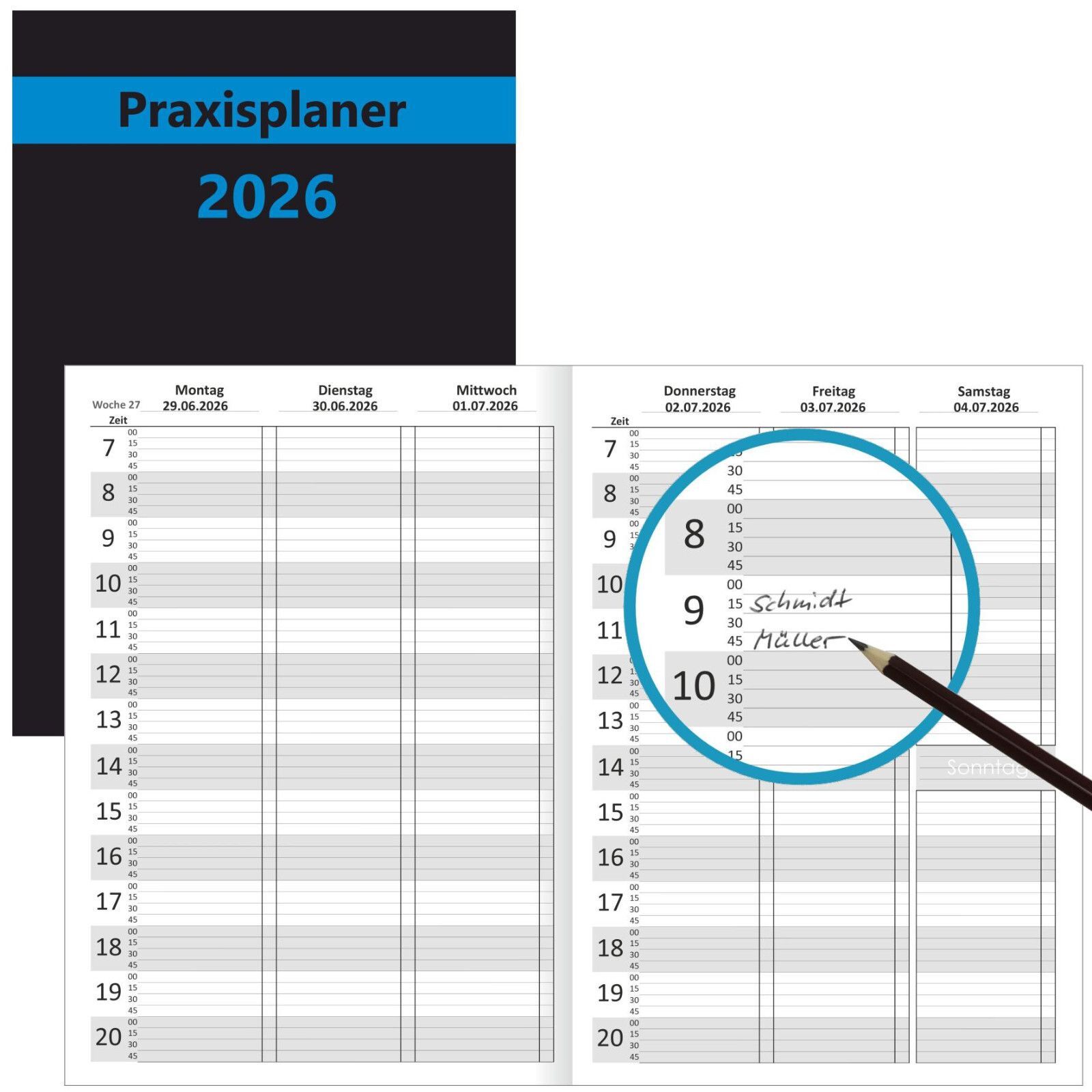 Praxisplaner 2026 A4 15min Takt Terminplaner Terminbuch mit Datum Kalender Timer