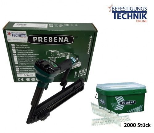 Prebena Druckluft Ankernagler ST2-ANK60 40-60mm + 2000 Ankernägel 50mm 20°