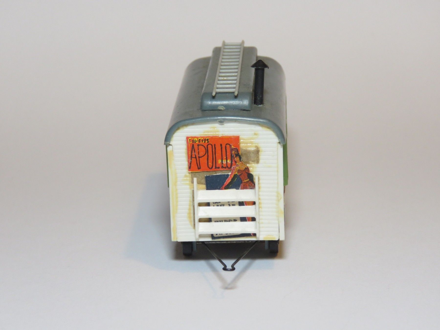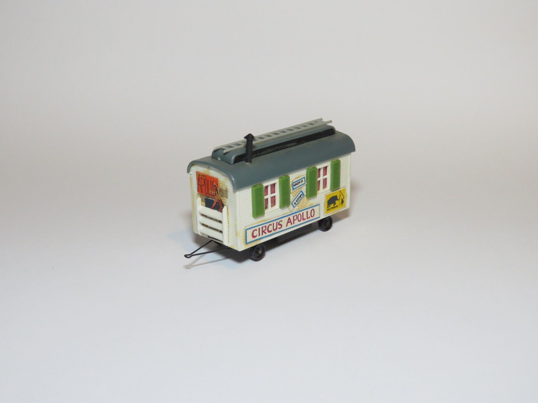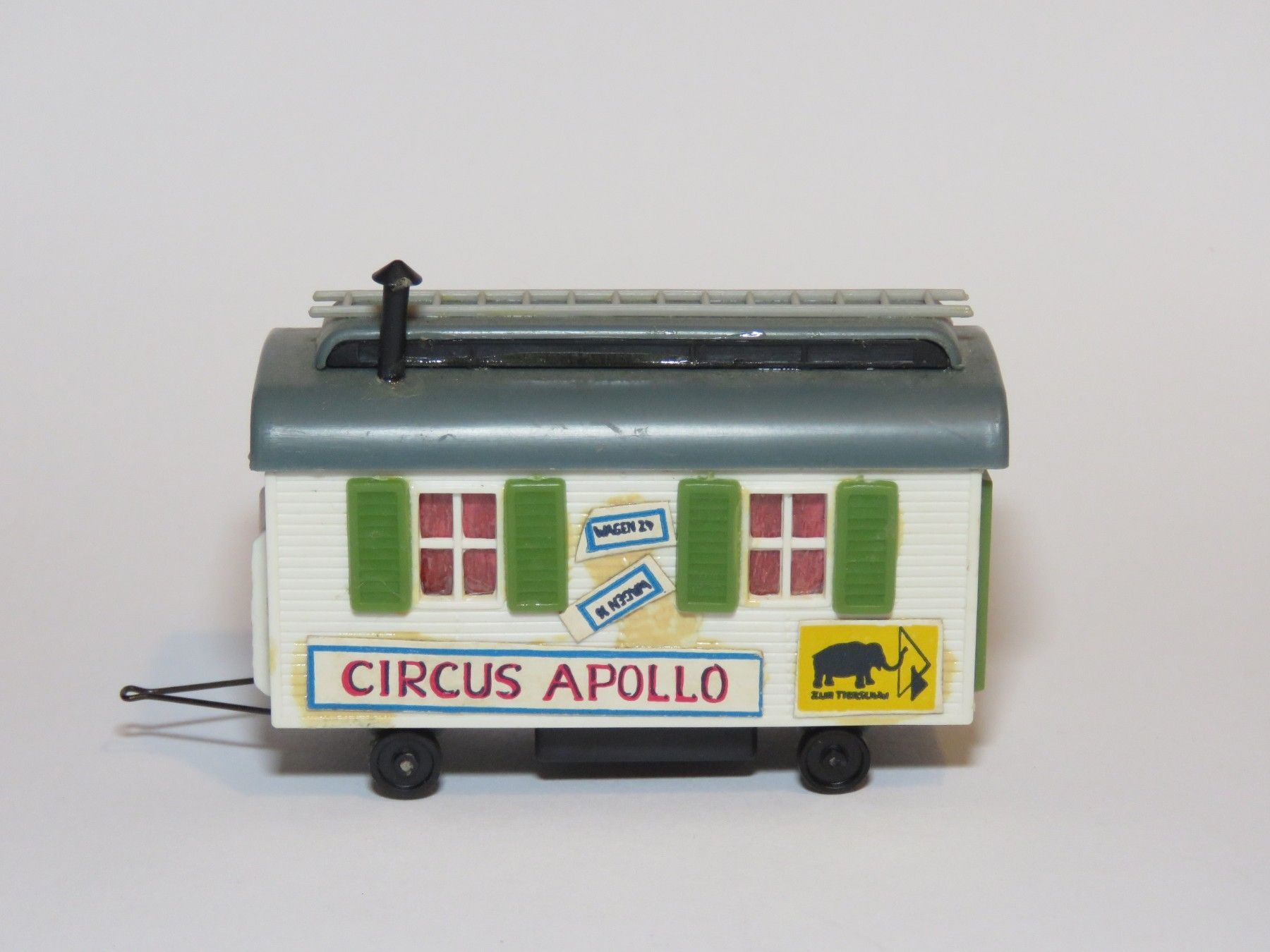 Hersteller: Preiser Artikelnummer: 601 Artikel: Bauwagen Beschriftung: Cirkus Apollo Maßstab: HO - 1:87 Anmerkung: Die Deichsel ist aus Metall und starr. Die Fotos sind Teil der Artikelbeschreibung Der Markenname ist rechtlich geschützt und wird lediglich genannt, weil er Bestandteil der Ware ist un