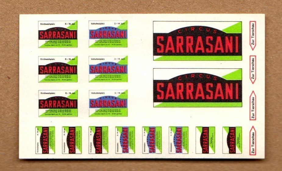 Preiser Preiser H0 Aufkleber-Bogen Decals aus 20076 Zirkus Sarrasani Circus Zirkuswagen NEU