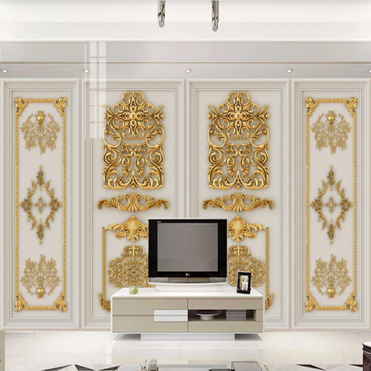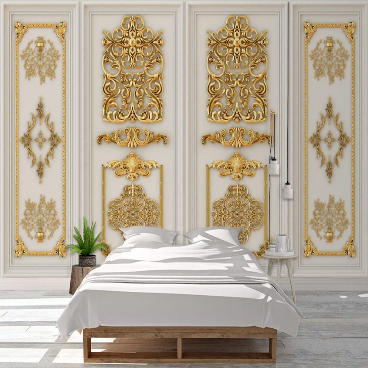 Premium 3D Wandtapete Goldene Blumen Relief Tapete Modern & Elegant 10333