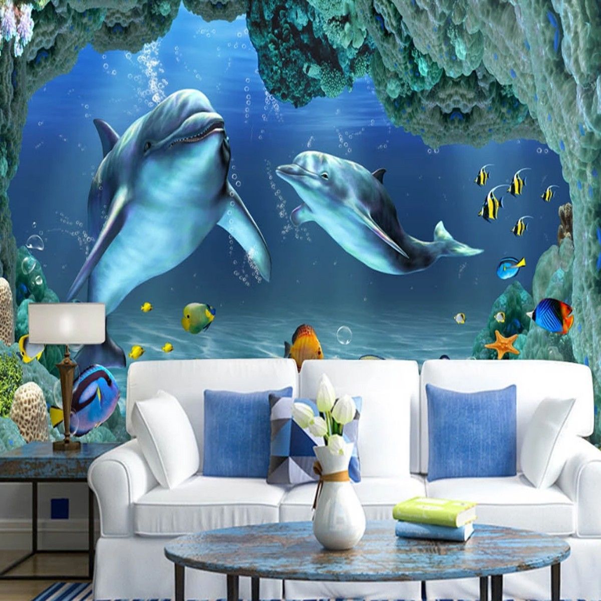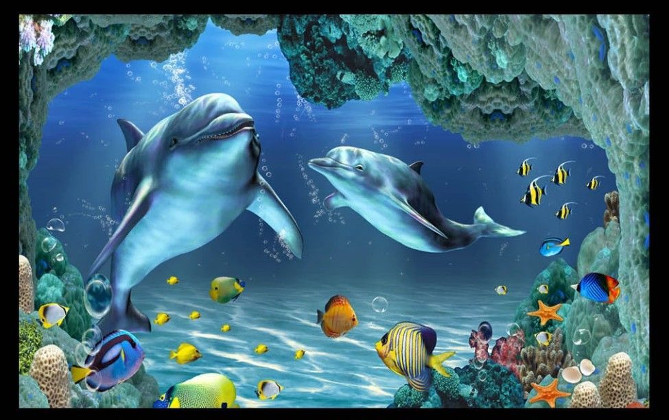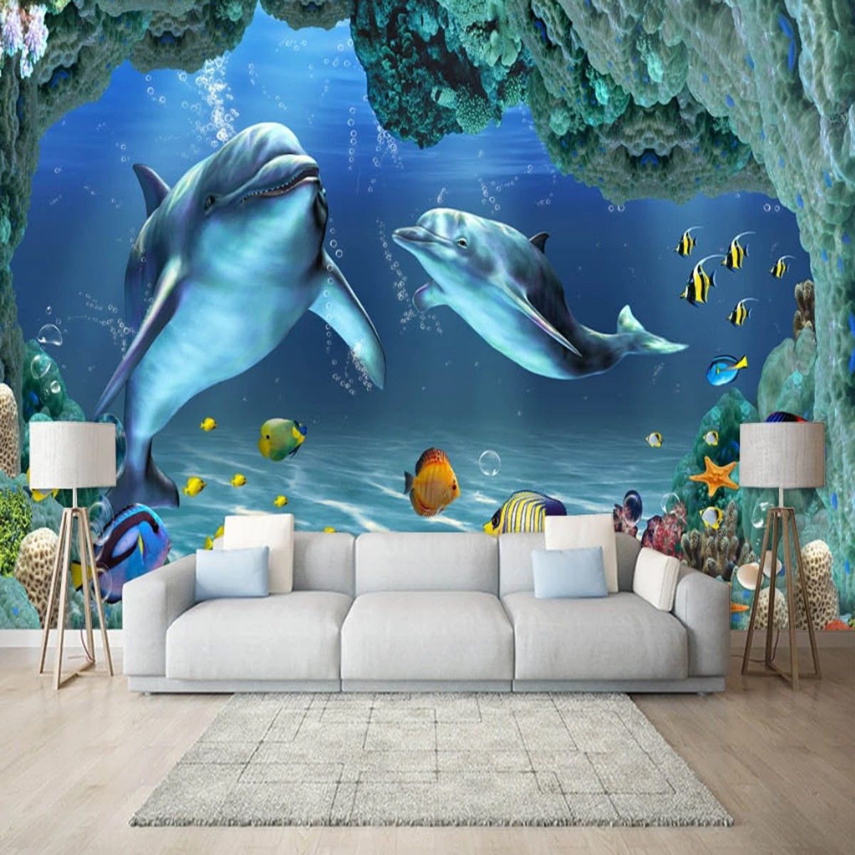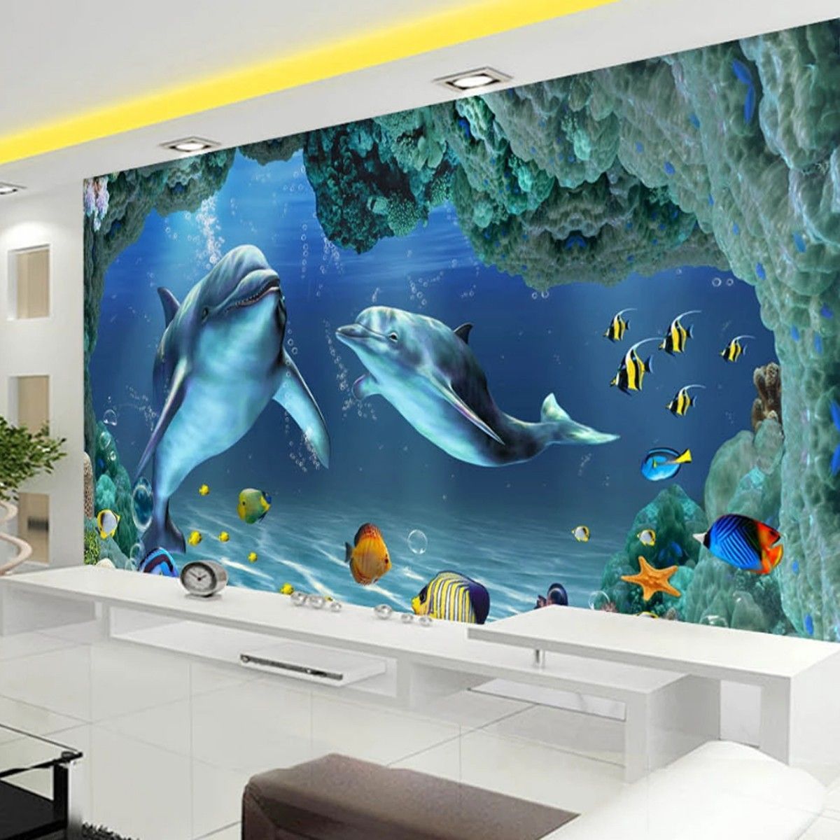 Premium 3D Wandtapete Meer Delfin Familie Wohnzimmer & Kinderzimmer 10331